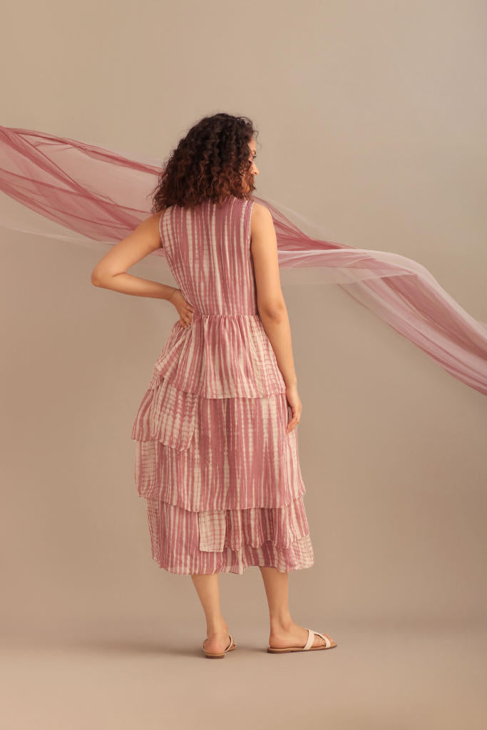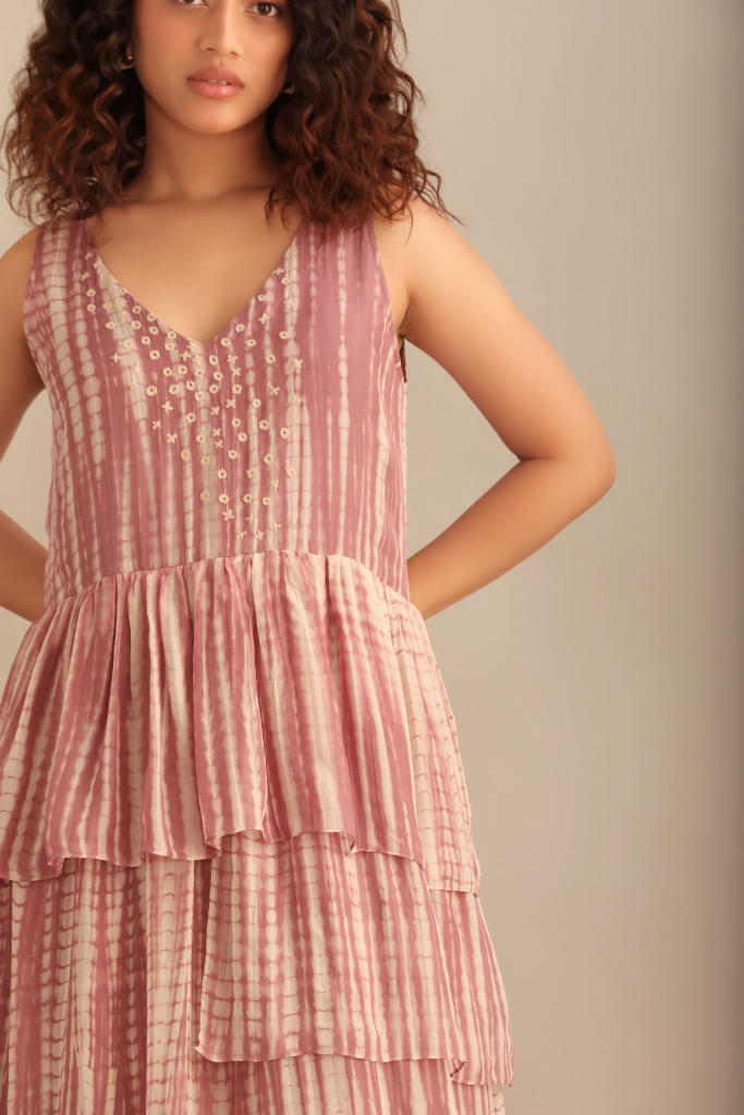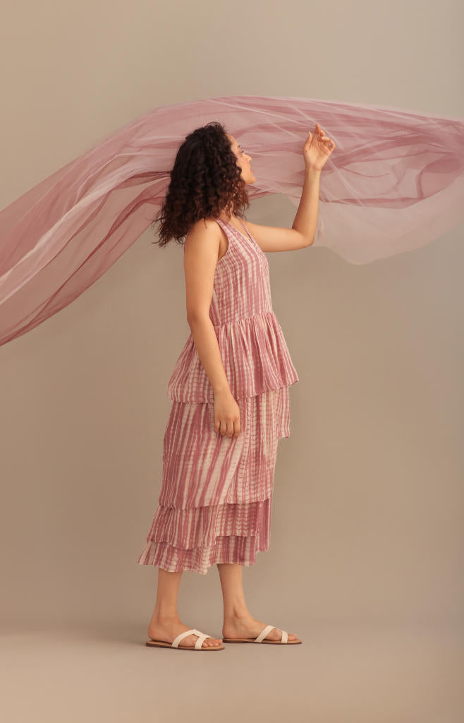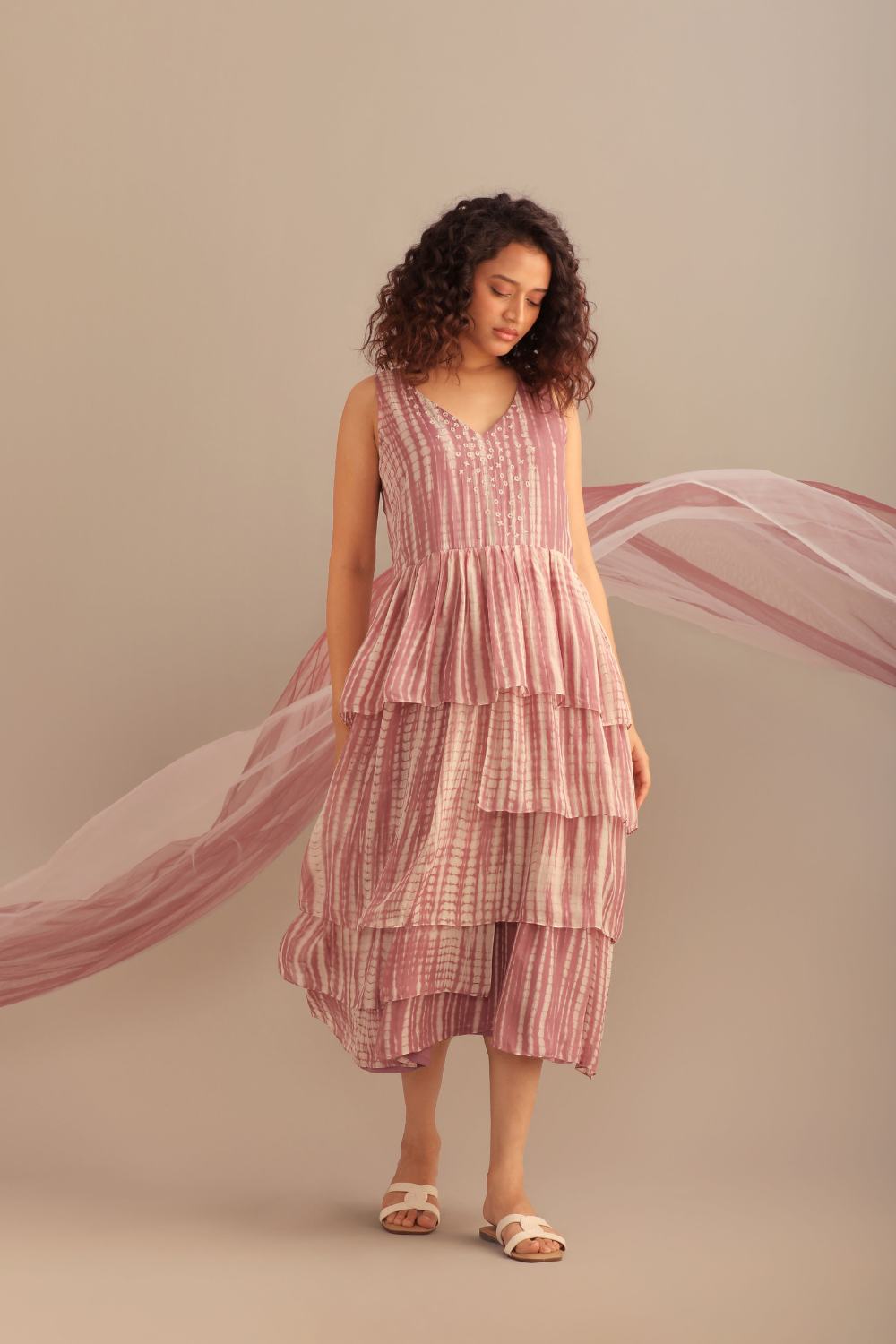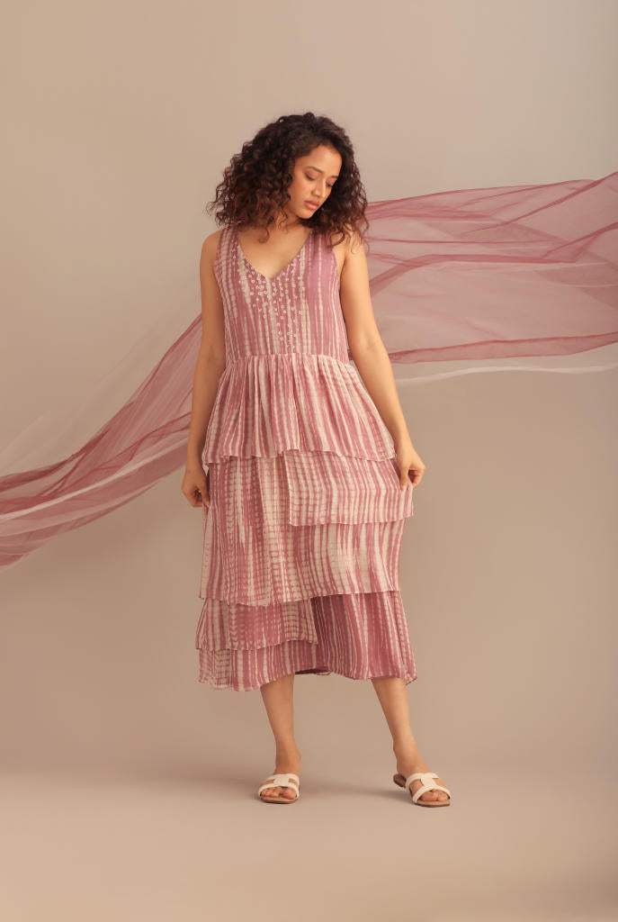 Tie-Dye silk flap dress with delicate hand embroidary on yoke