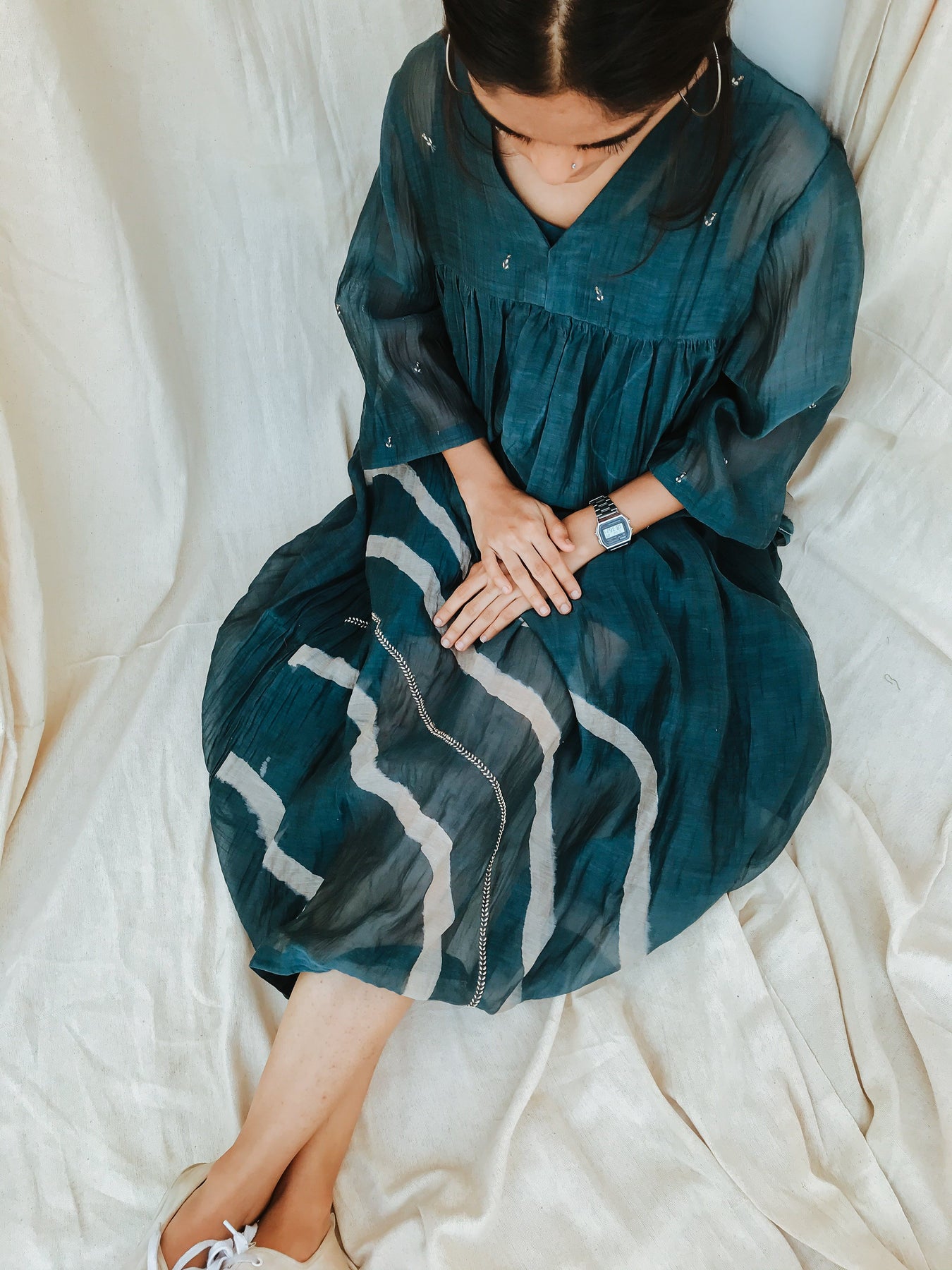Chanderi silk dye discharge and hand embroidered veil. All the pieces are hand made and hand crafted.