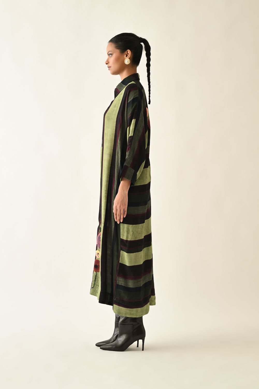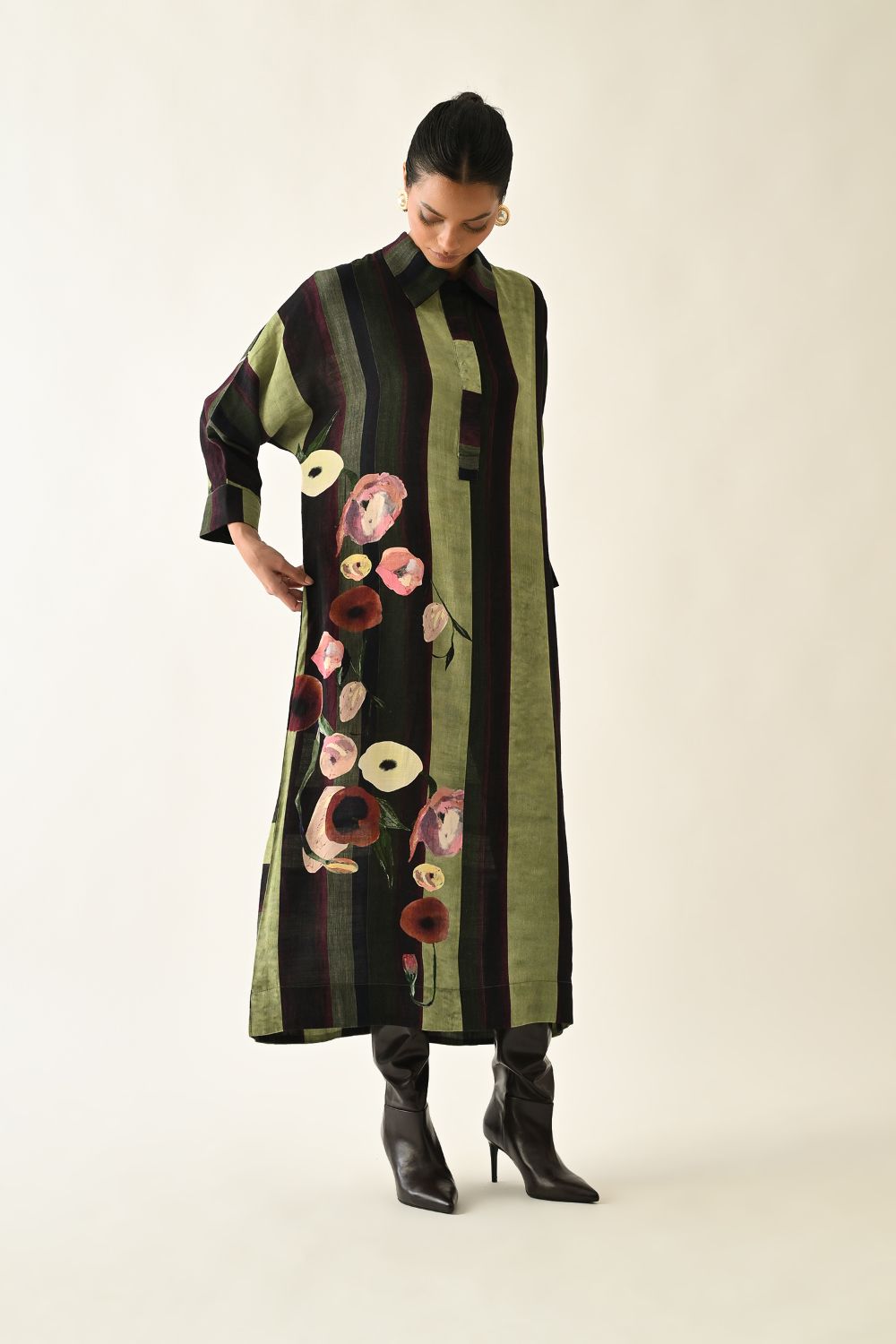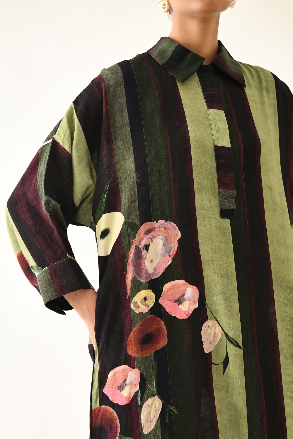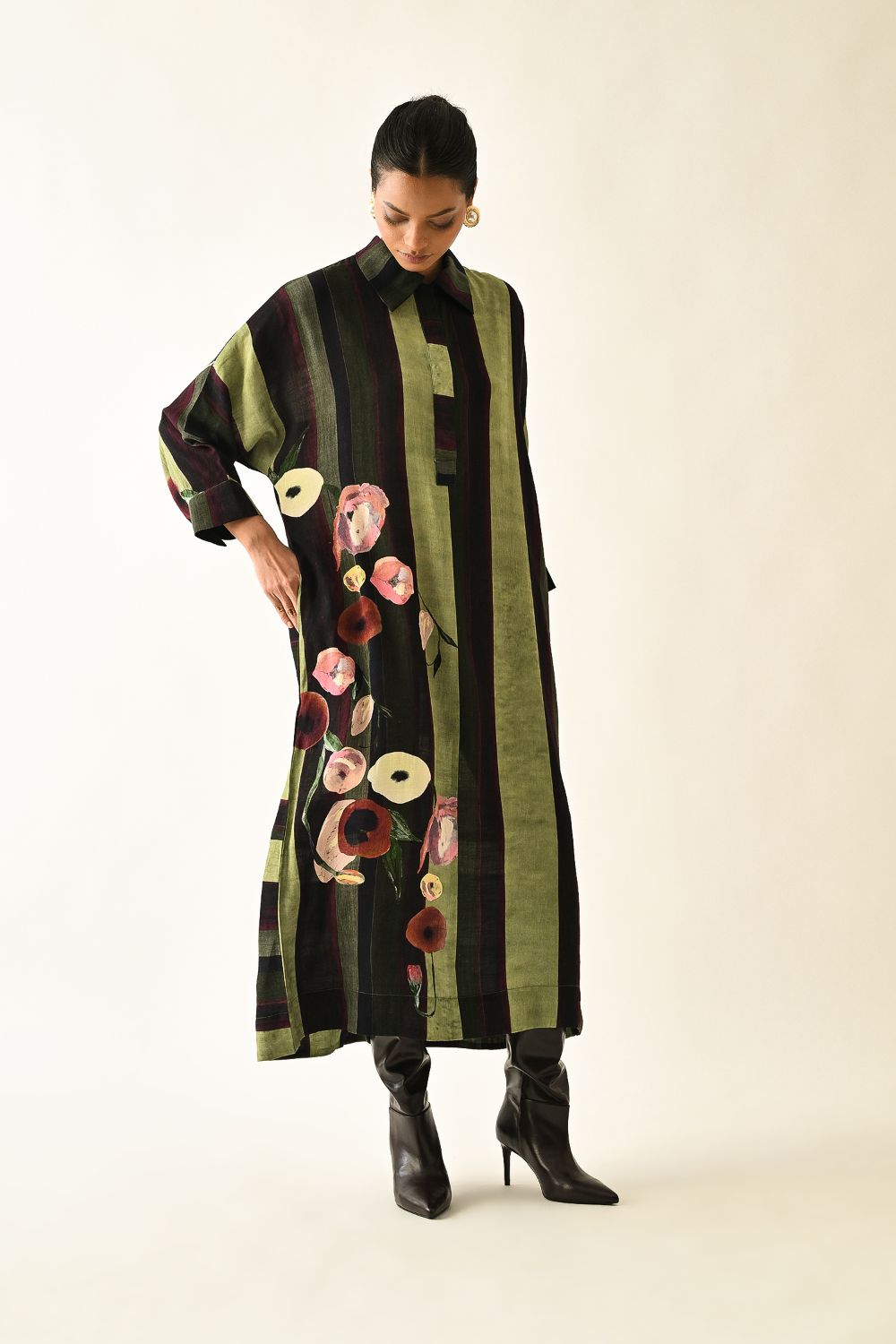 Dress: Anti-fit, Half Placket, Inseam Pockets, Print placement design. We recommend going one size smaller for a snug fit. Variations in color, texture, and weave are inherent due to the hand made nature of the garment.| Model is wearing XS-S