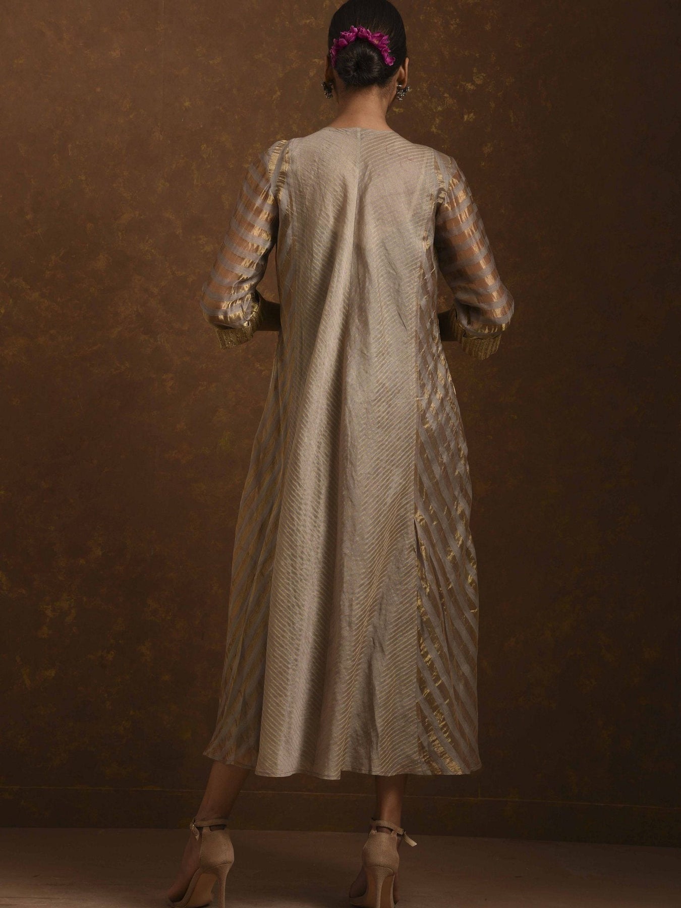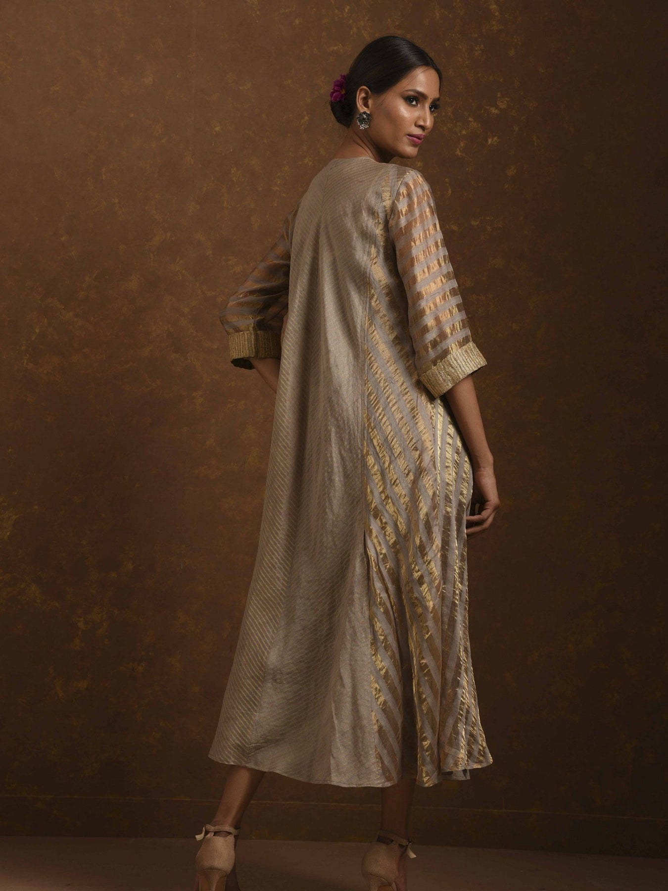 Shagufta Grey and Gold Dress