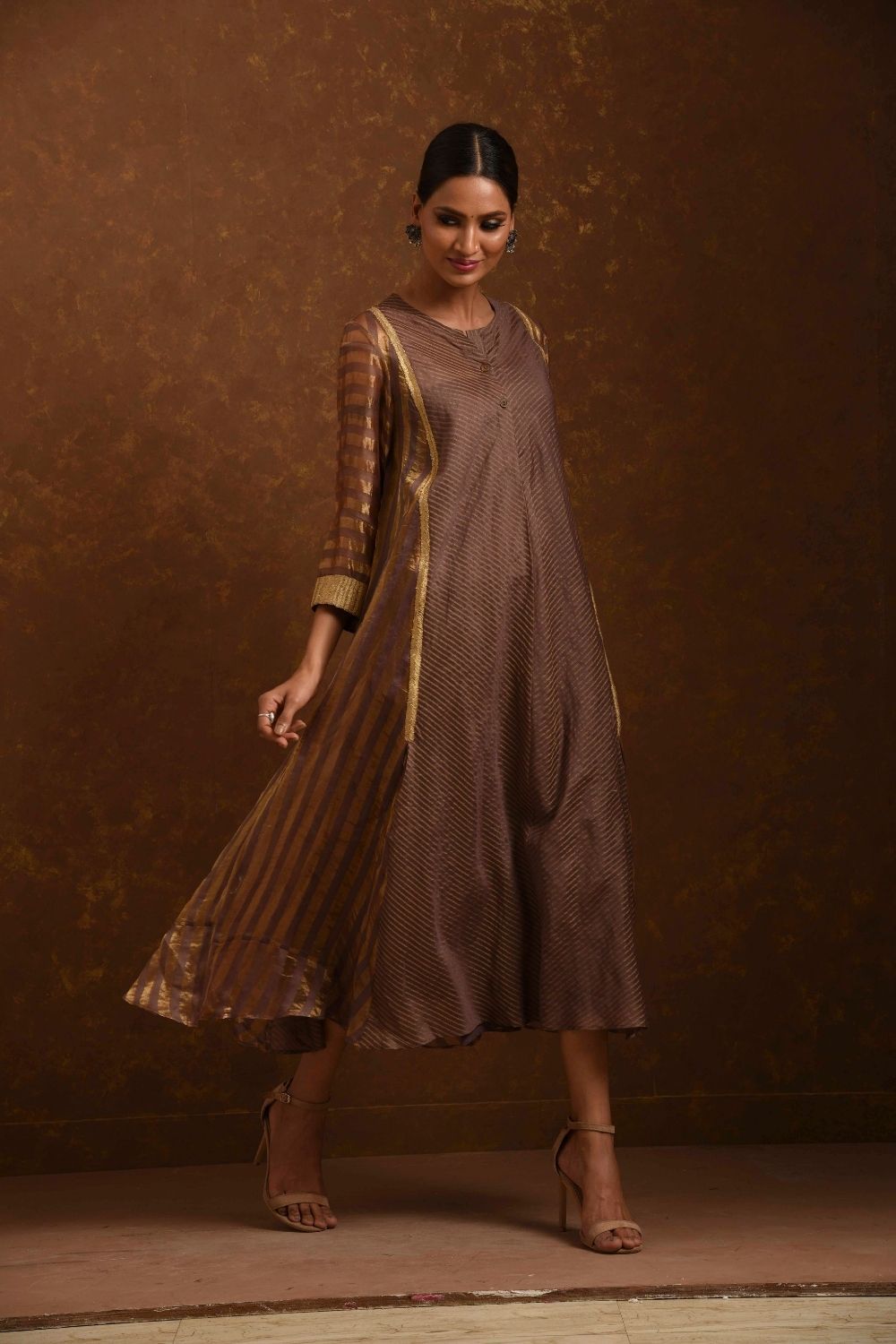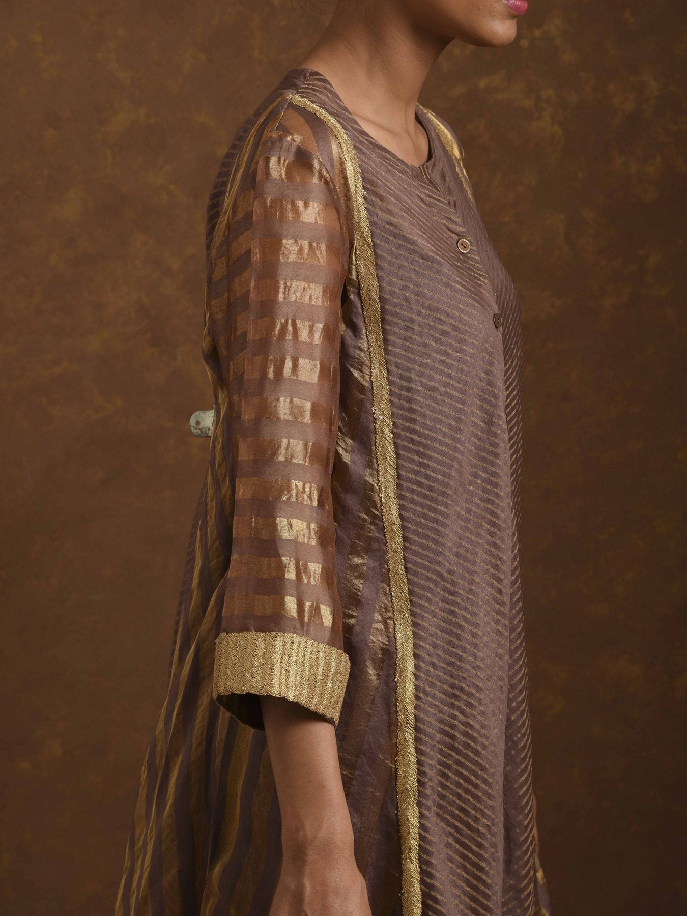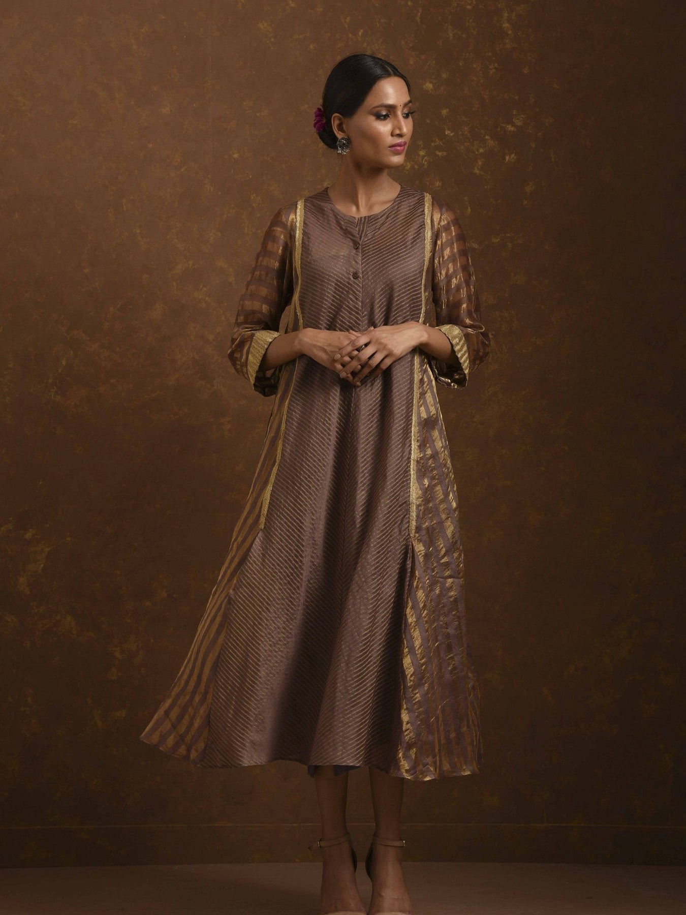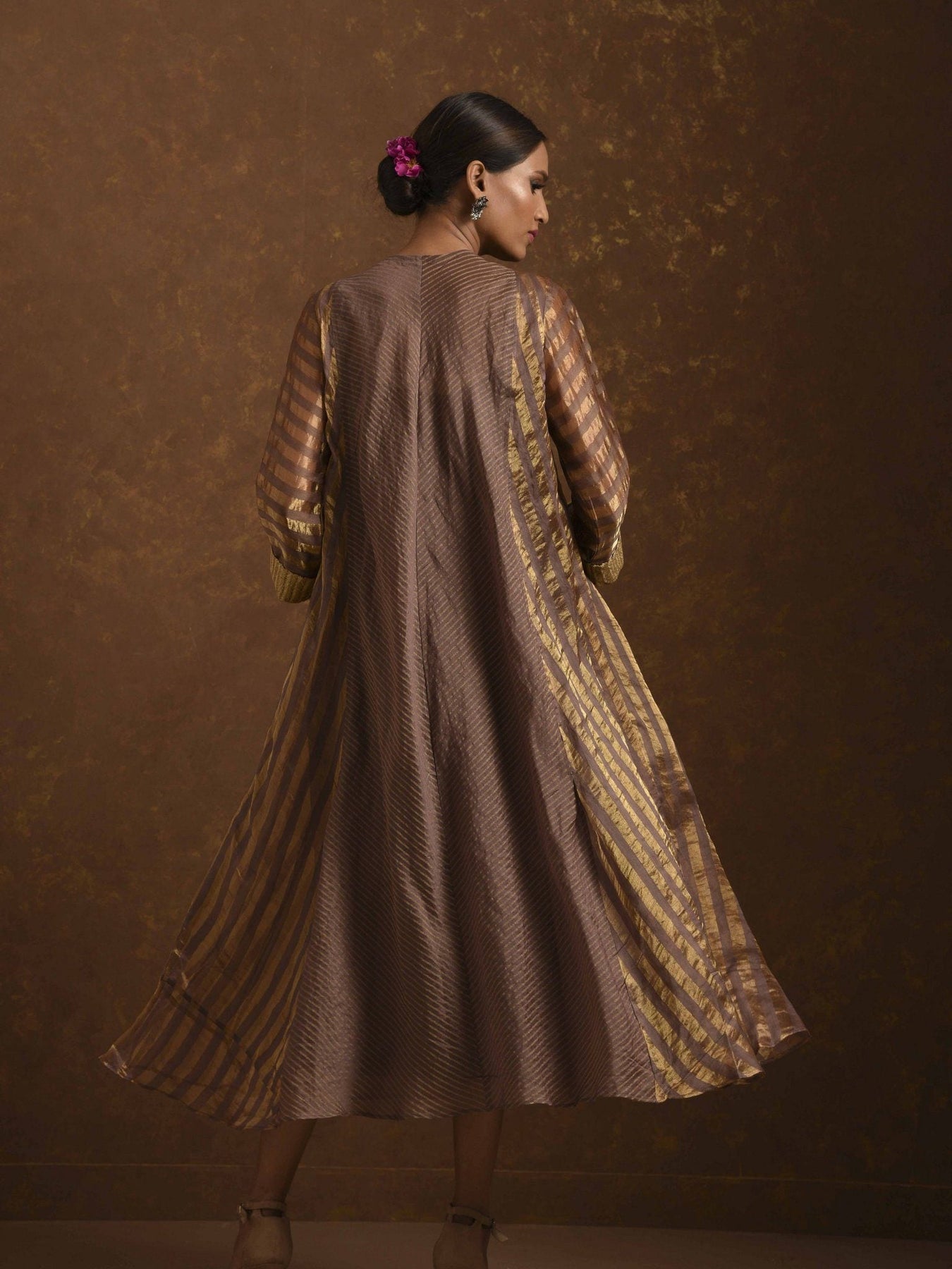 Tissue Stripe festive Dress with gold embroidery, Zardozi handwork