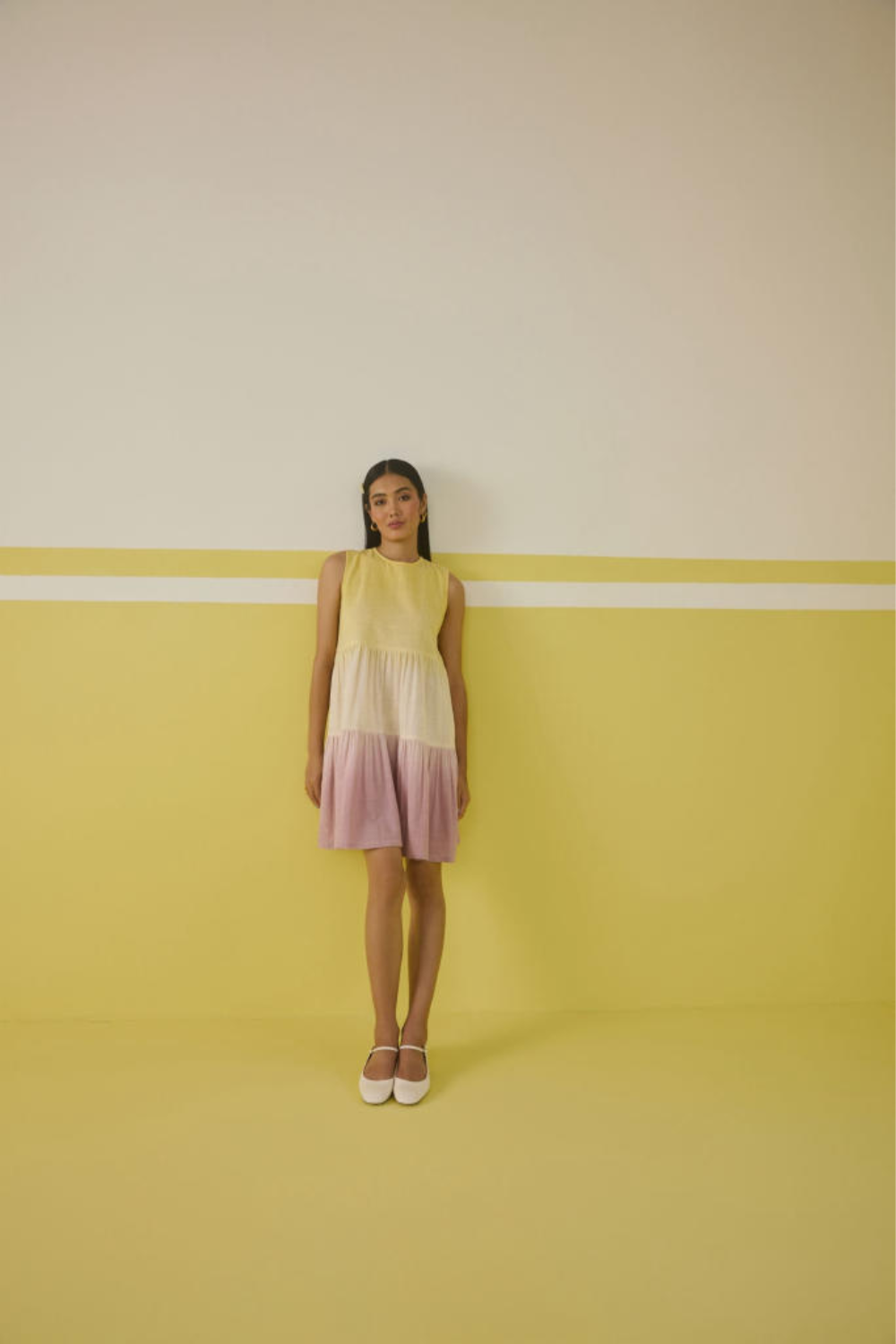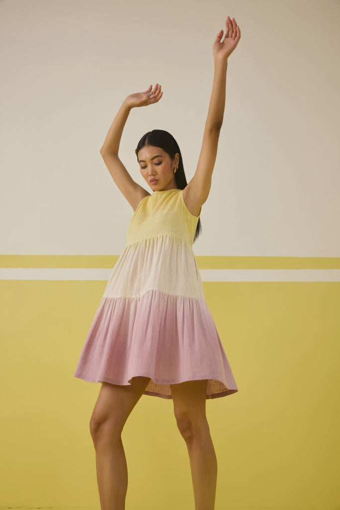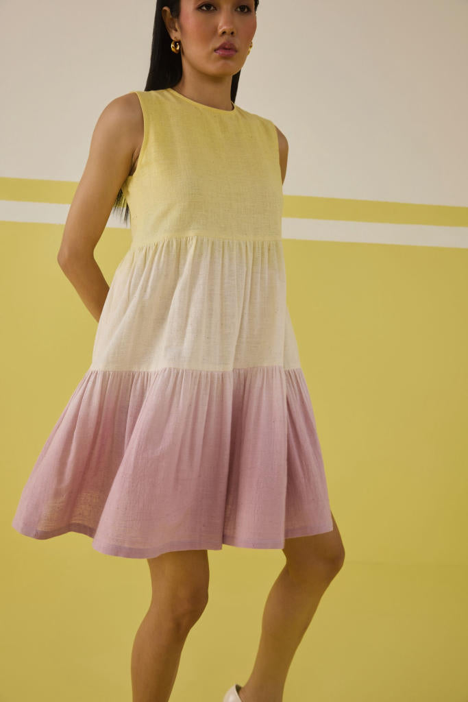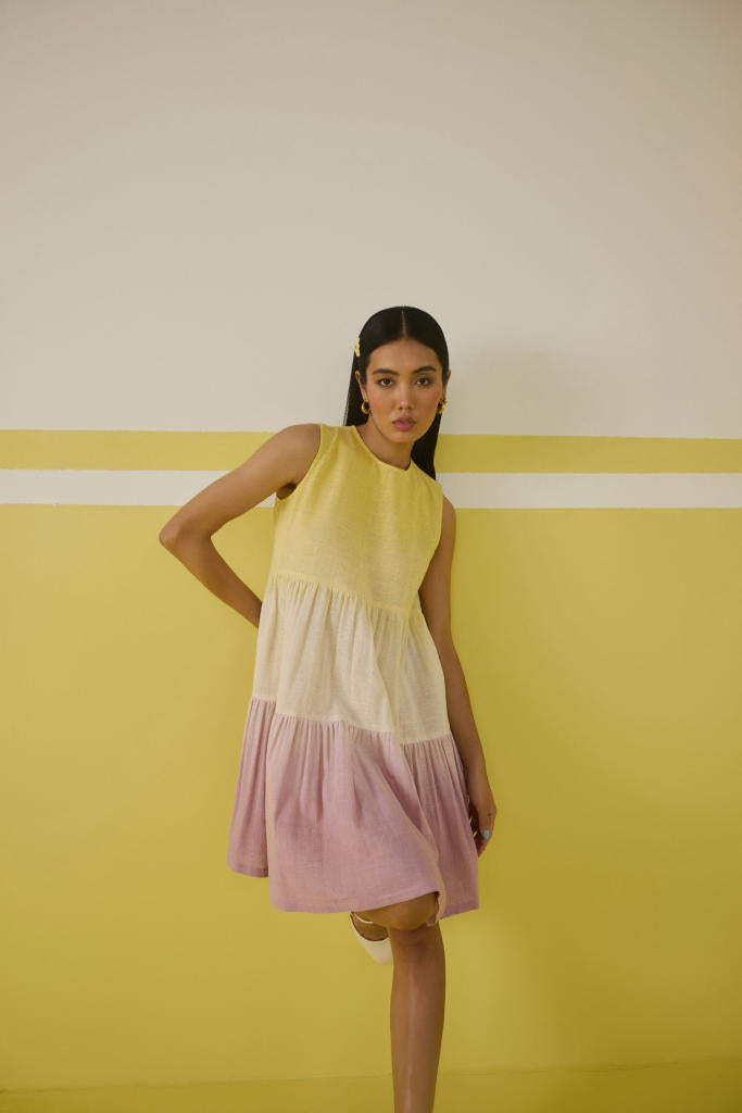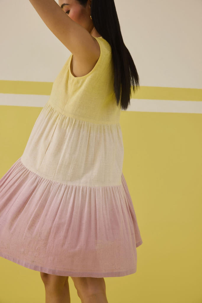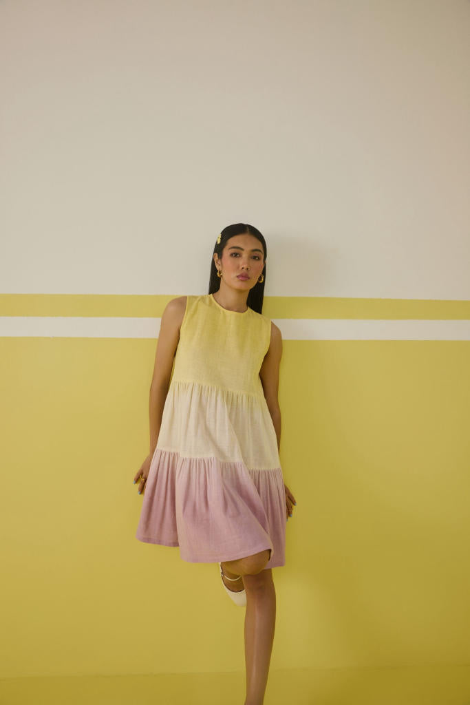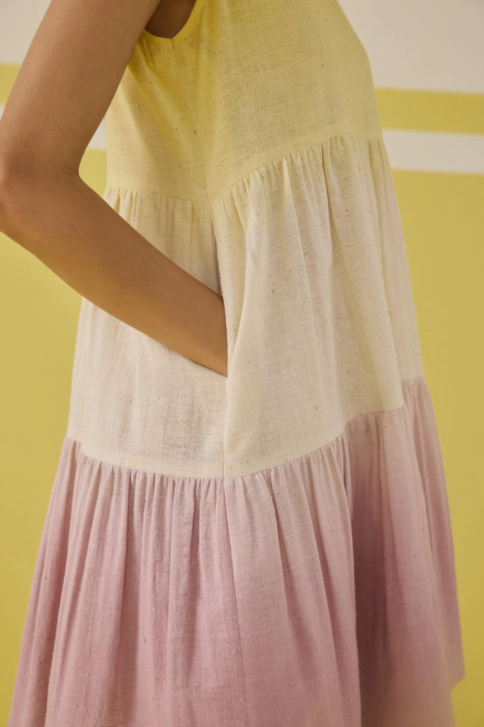 Regular fit, sleeveless mini dress crafted in handwoven Kala cotton fabric, tie dyed using azo-free dyes.