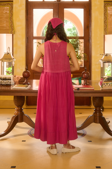 Handwoven yard dyed silk/cotton stripe Dress with 100% Cotton Linning