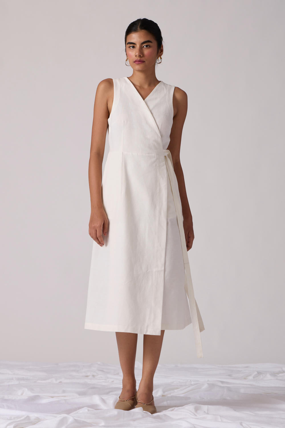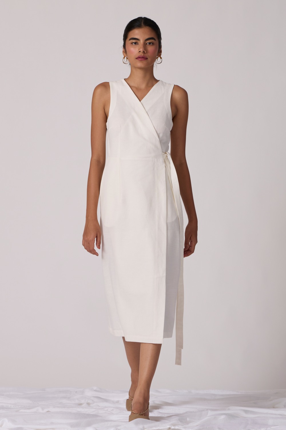 A smart wrap dress to save the day, any day. A self-tie at the waist for adjustable fit. In-seam pockets.