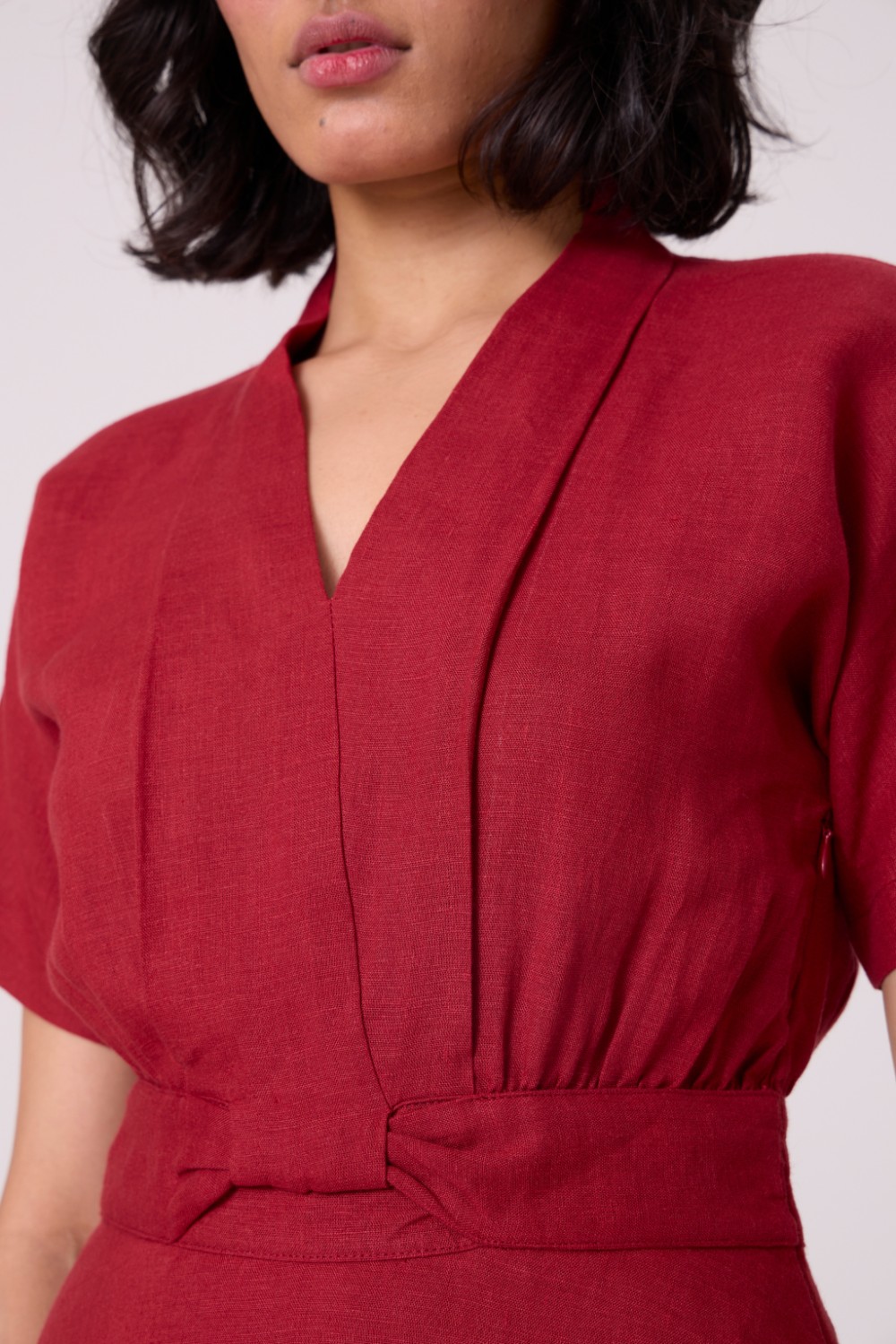 An ode to quiet drama. The pleated collar and knotted front detail turn simplicity into sculpture, balanced by a soft ease through the sleeves.