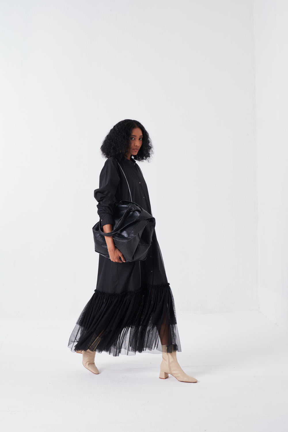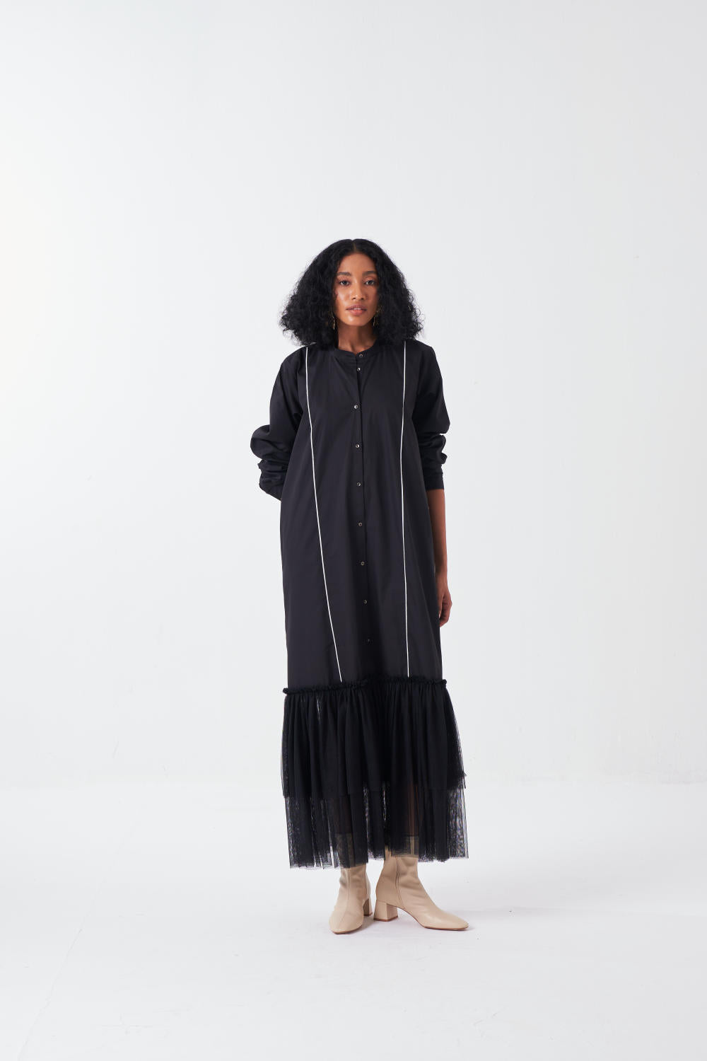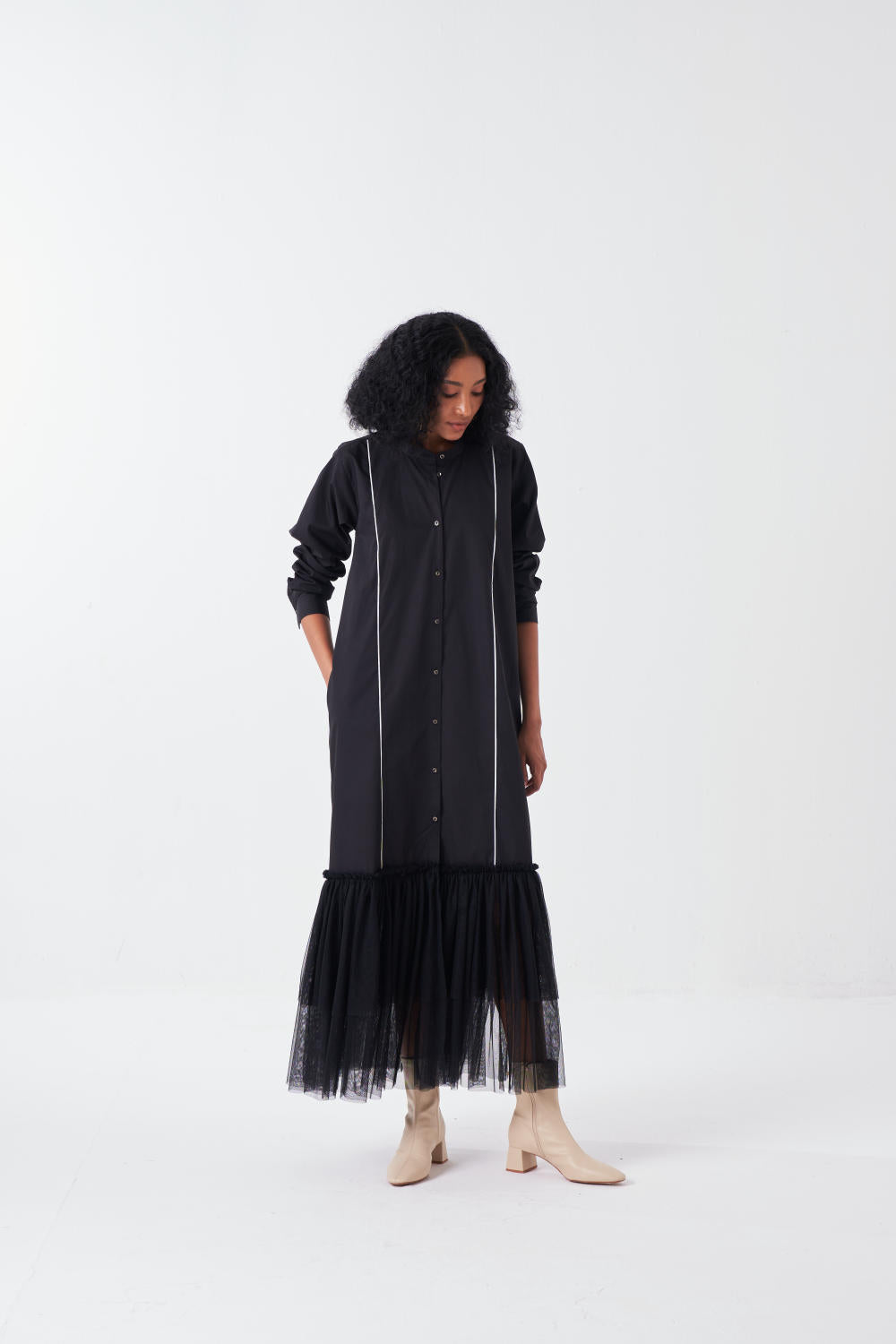 BOTTOM FRILL DRESS-BLACK