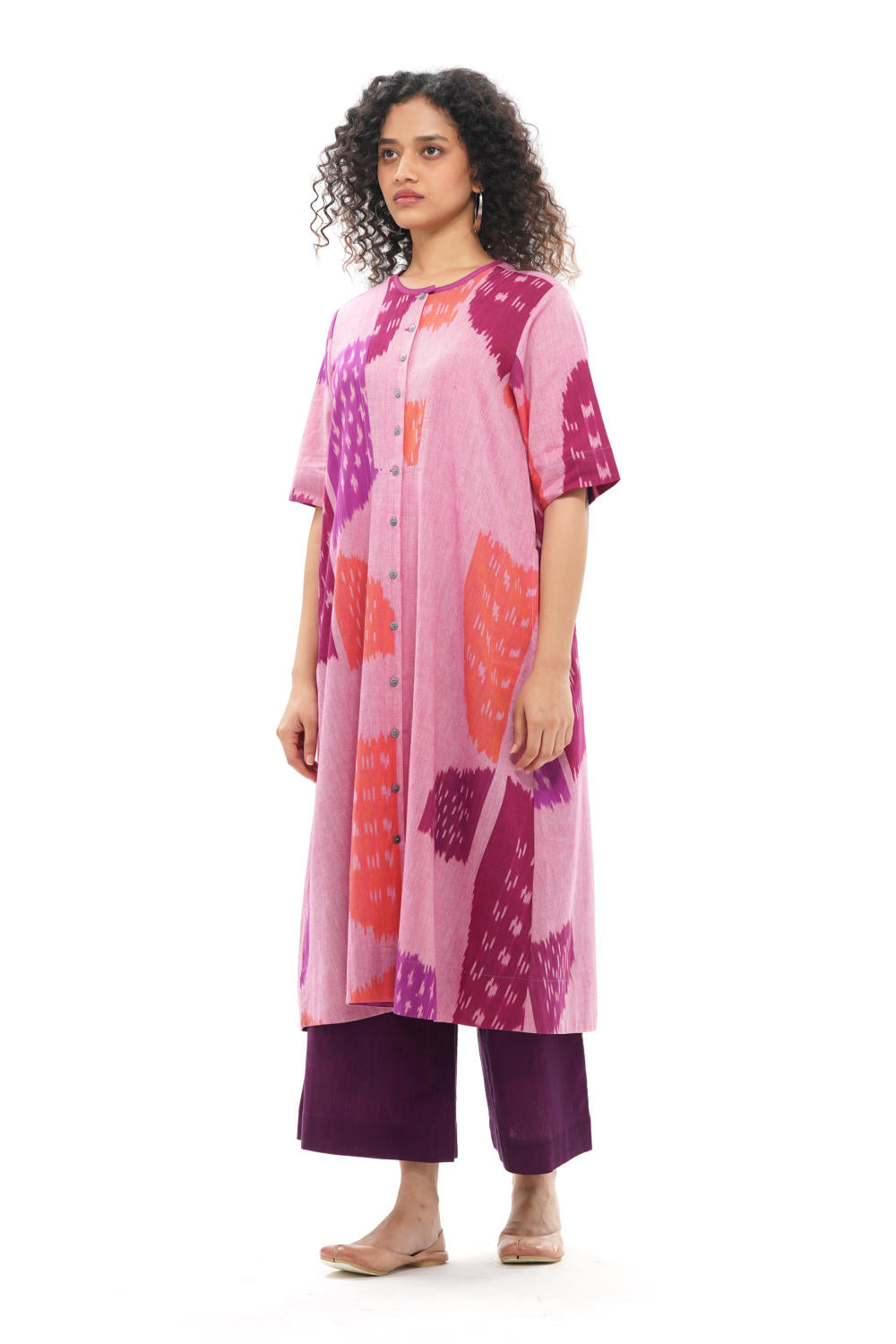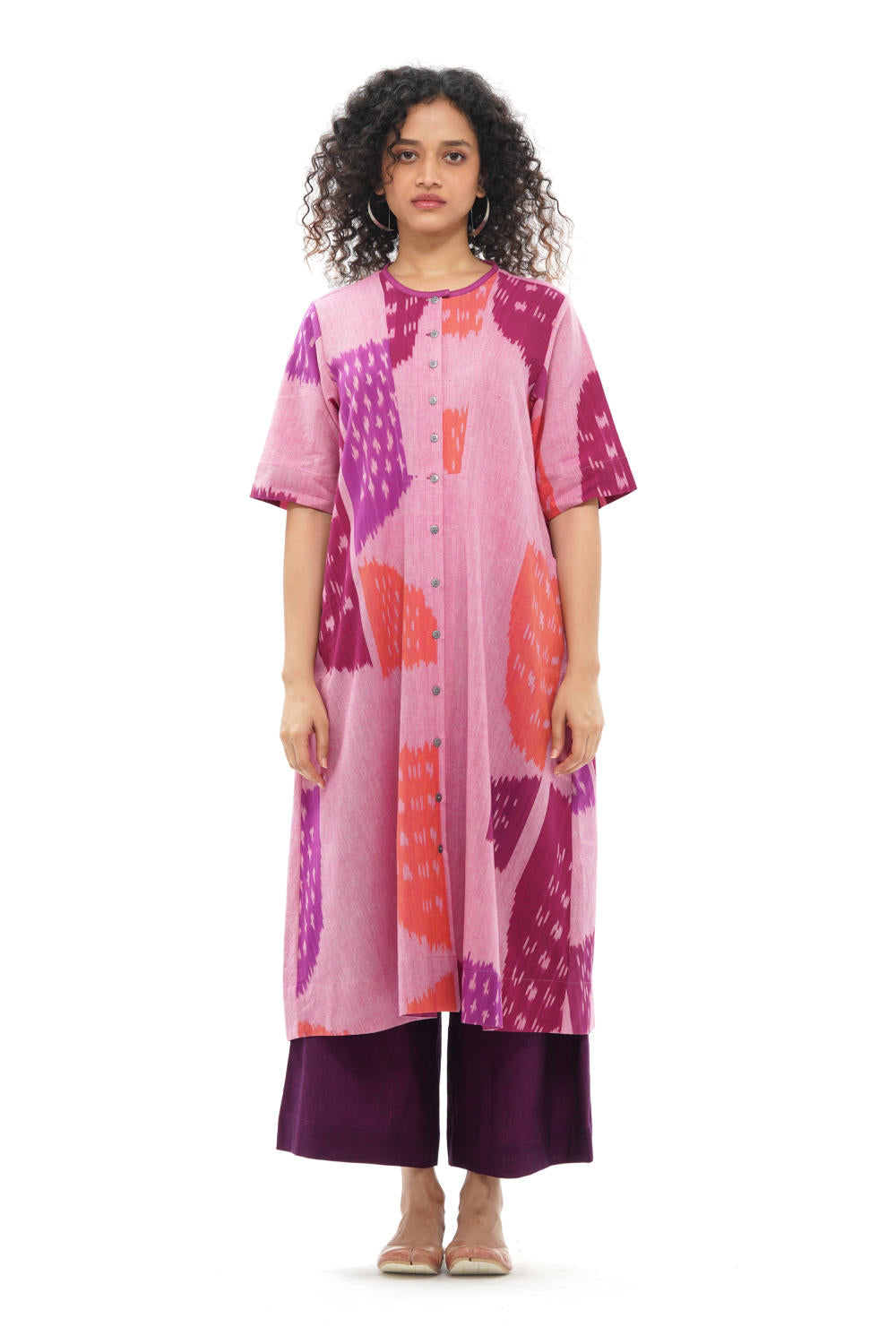 *Front button opening with a round neck