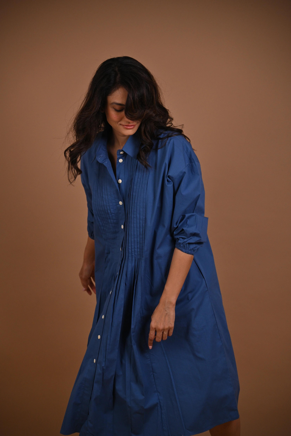 Introducing a Free size crisp cotton classic, a 100% cotton poplin dress with front pleats, a button-down design, and pockets. Reminiscent of a timeless oxford shirt transformed into a chic and versatile dress.