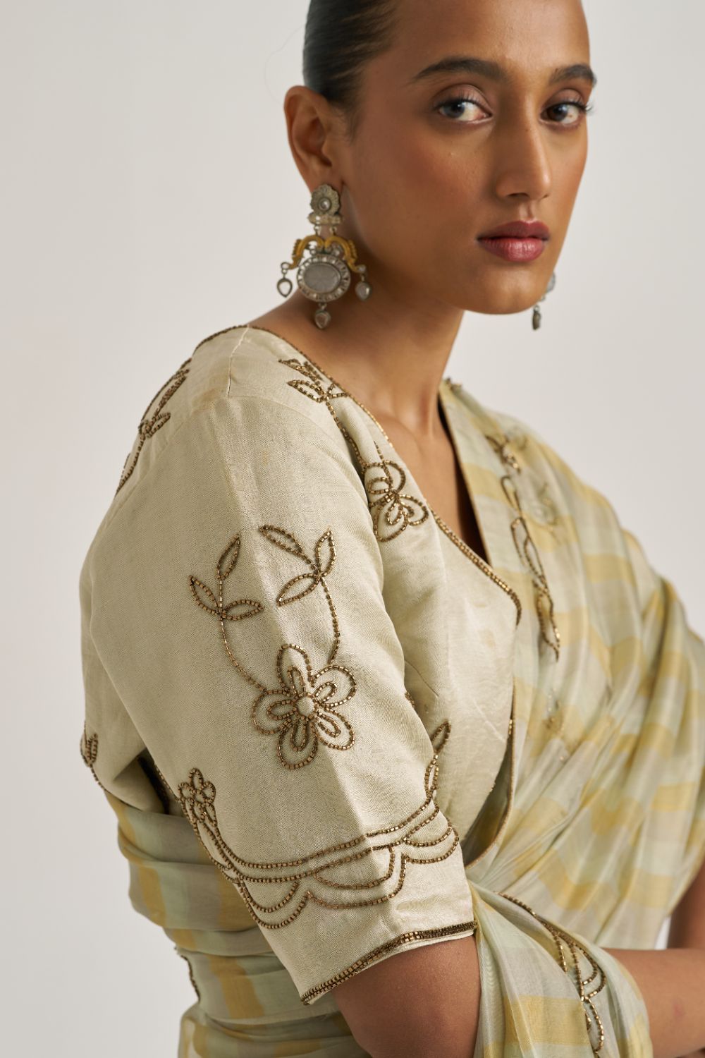 Closure, Detailed With Hand Embroidered Bead Floral