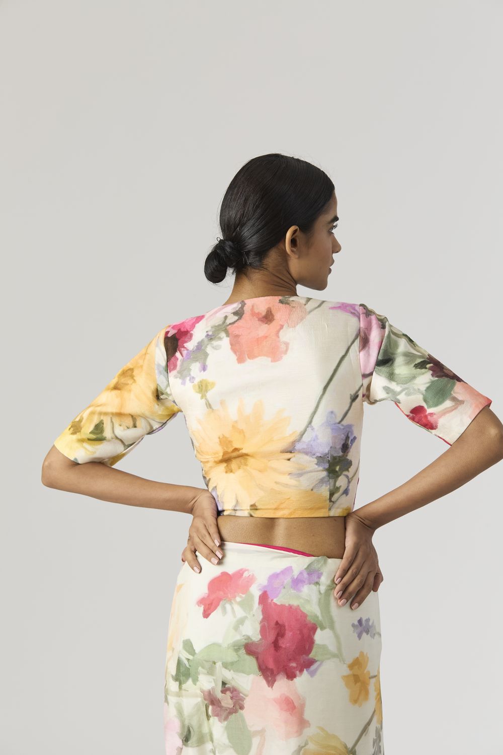 Priya’s strength lies not just in the imagery she creates, but in how she translates it onto silhouettes that honour real bodies. Her pieces are designed with ease and movement in mind — styles that drape, soften, and adapt effortlessly across sizes and shapes. Nothing feels intimidating; everything feels wearable.