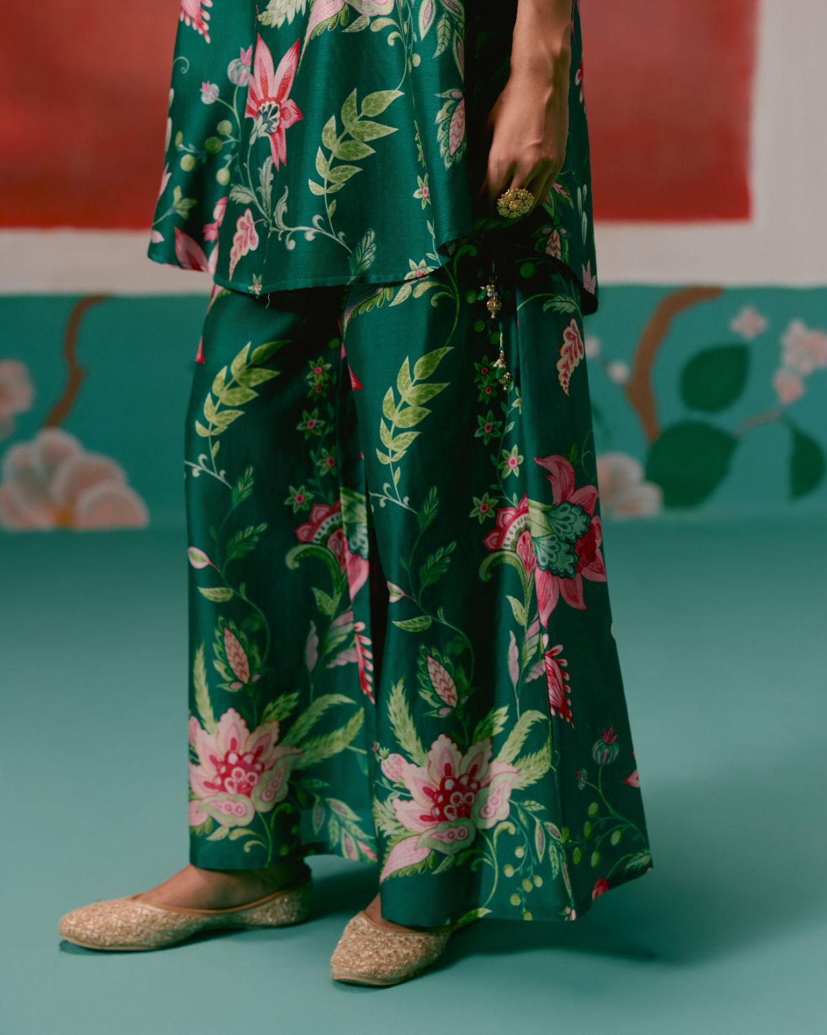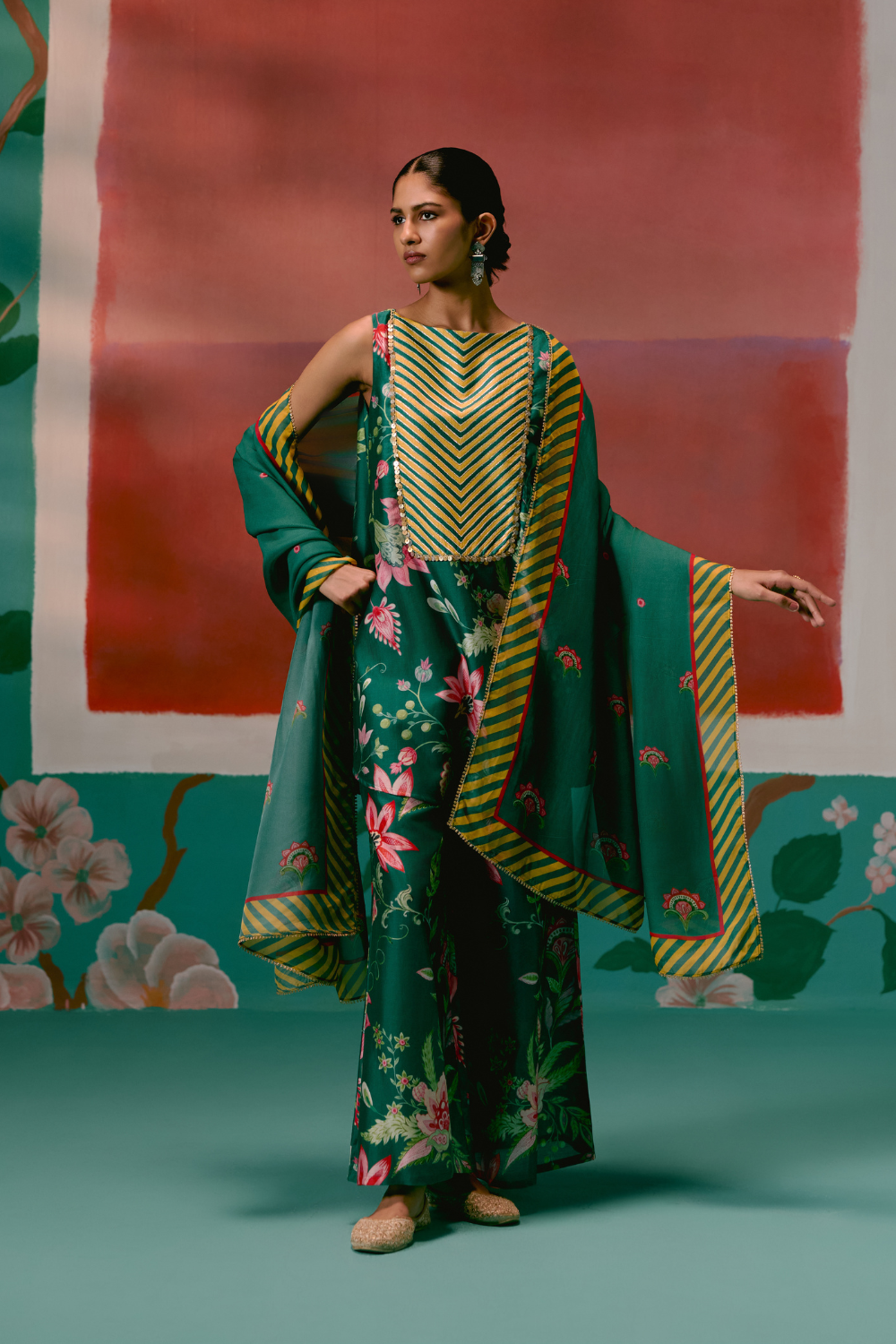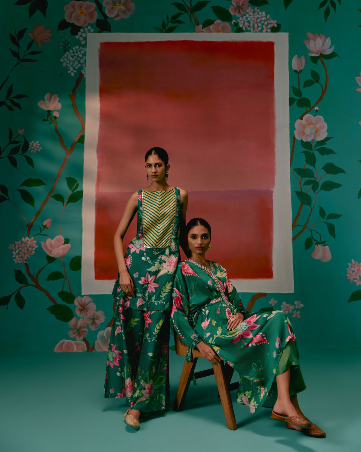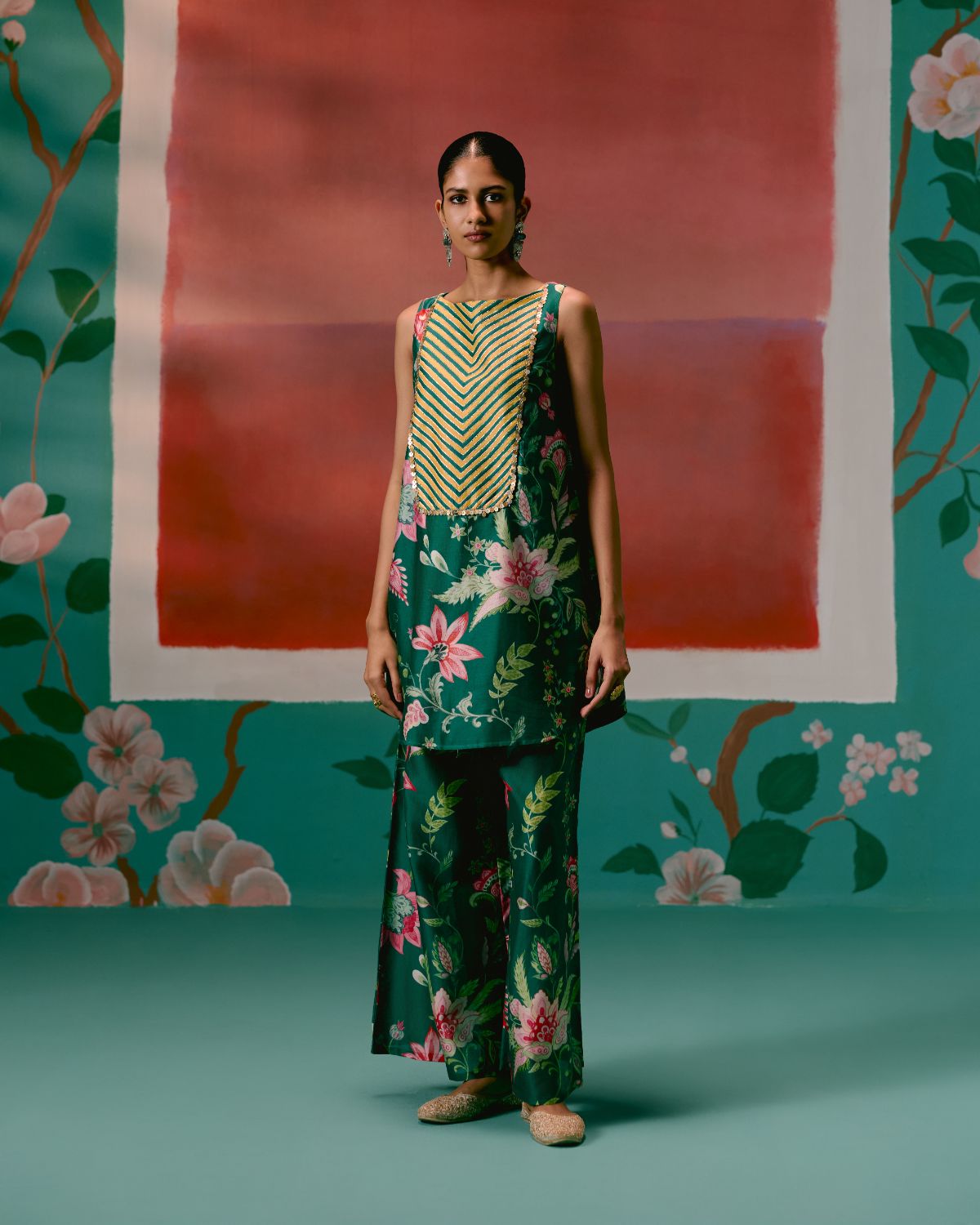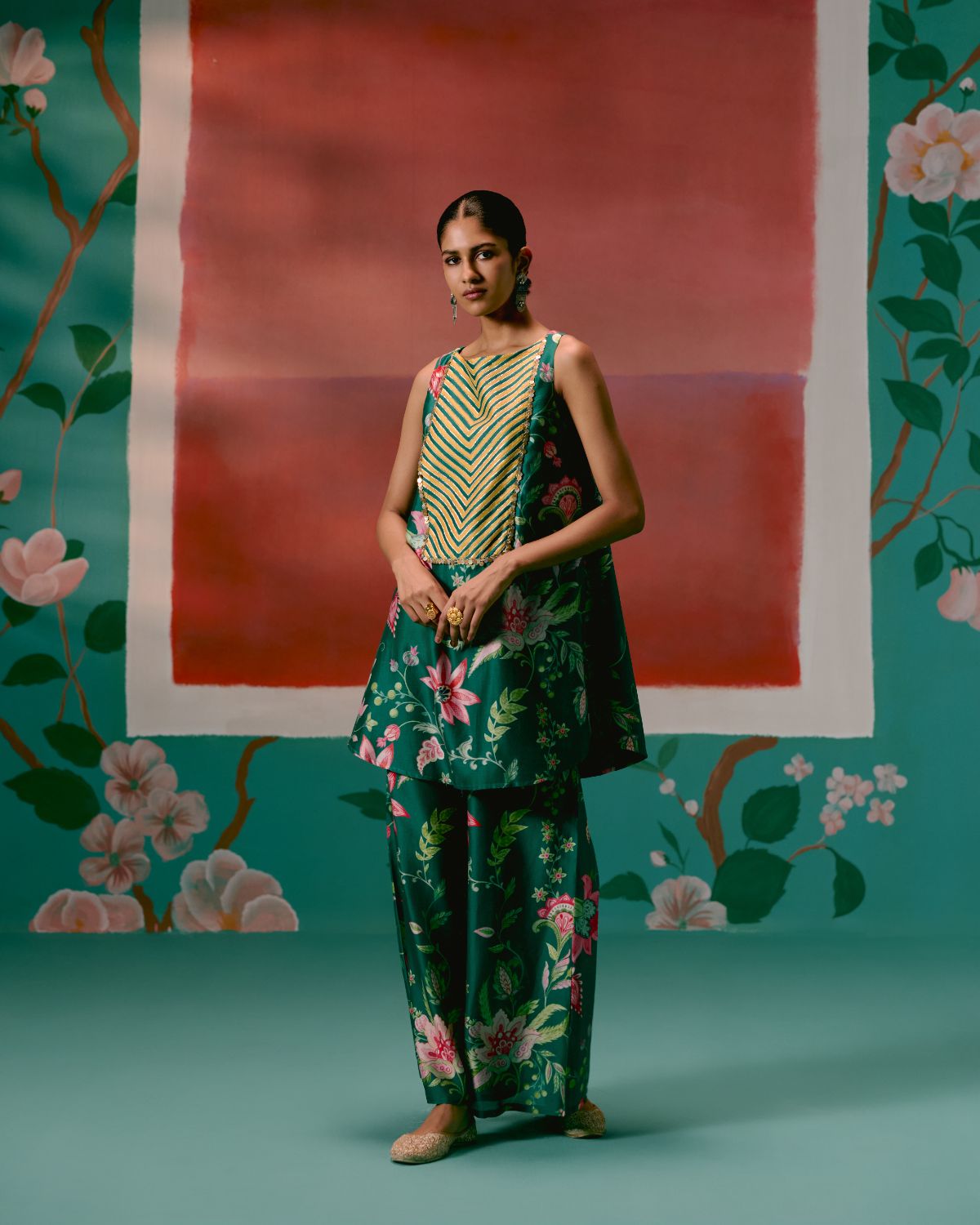 A timeless union of elegance and ease, the Green Chintz Sleeveless Kurta Set is a true festive-season essential.