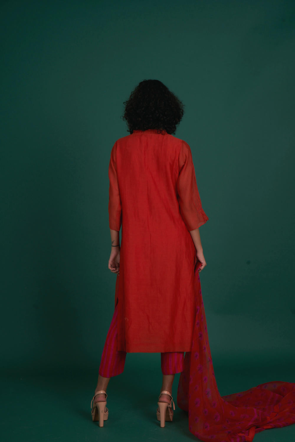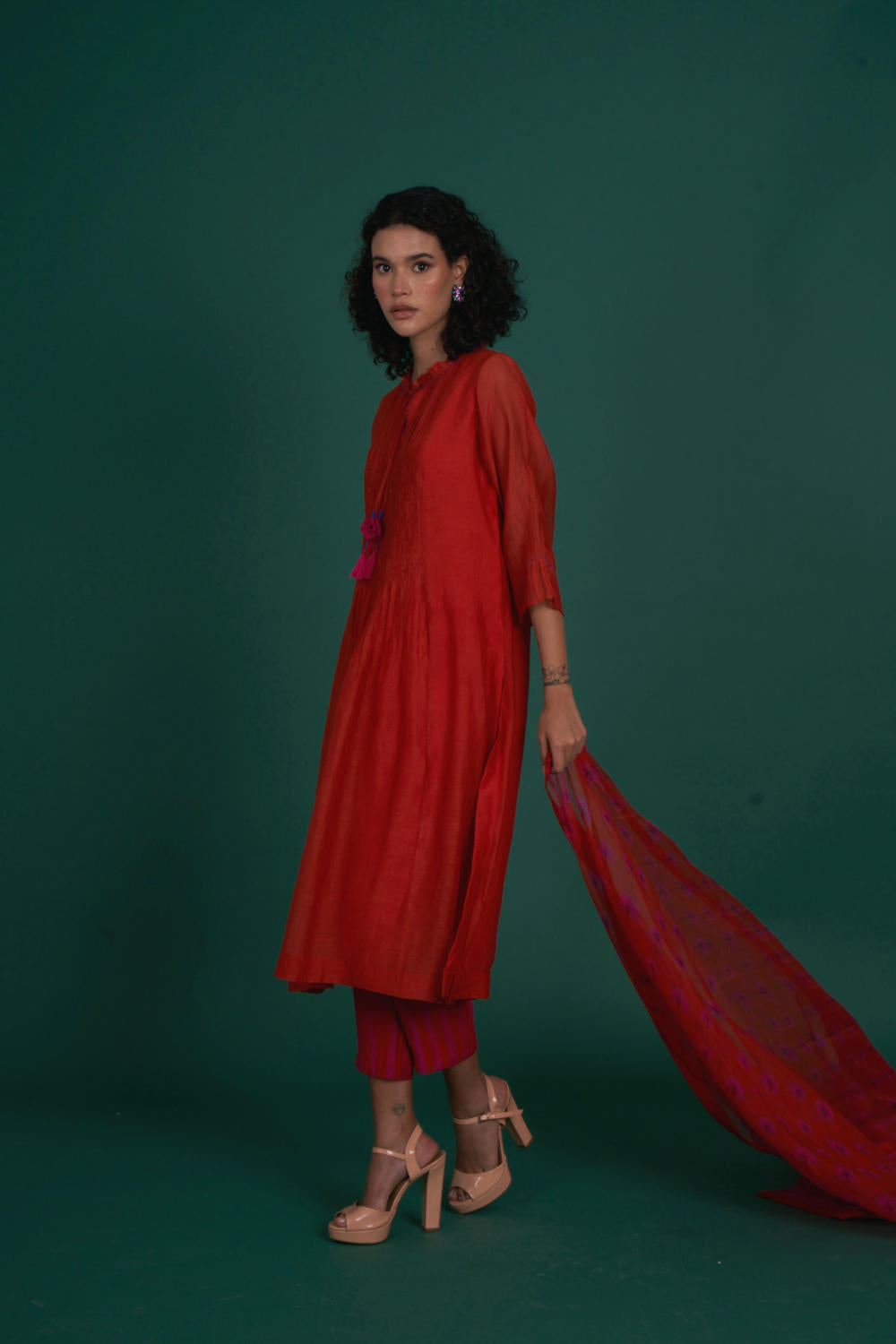 Orina mul cotton silk kurta set - red