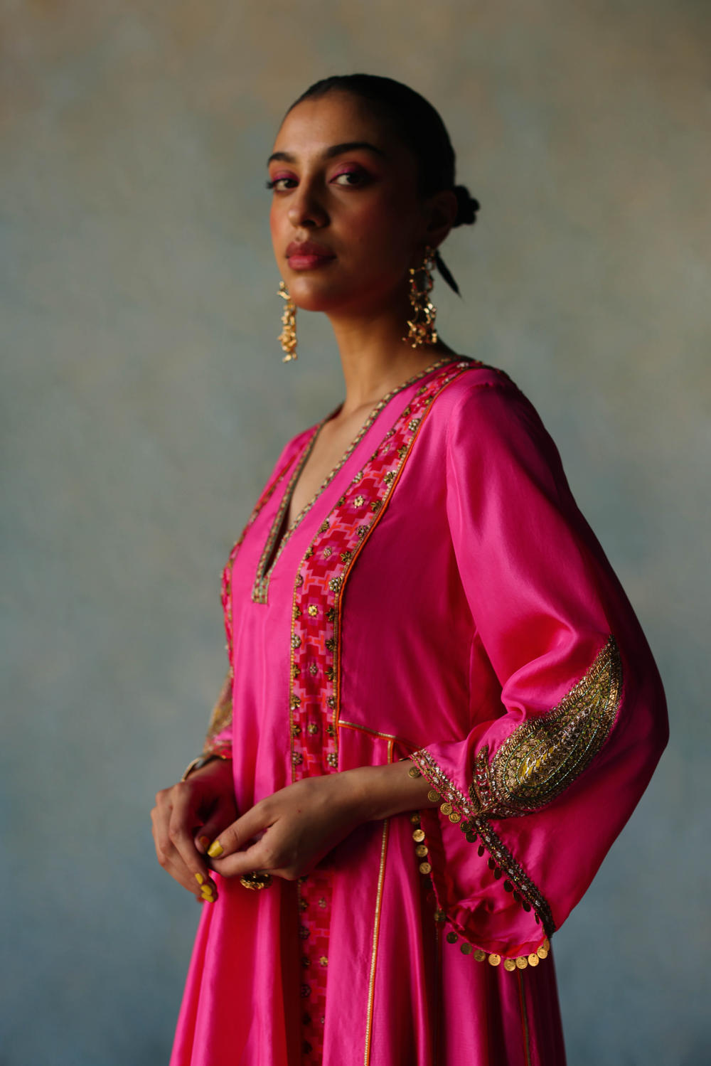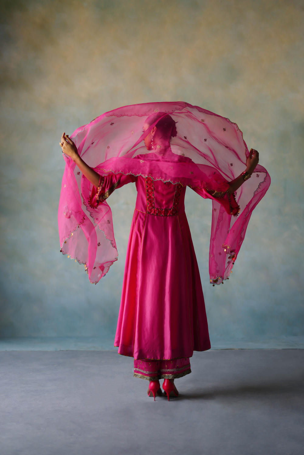 Their work is an ode to handcrafted Indian design — rooted in traditional embroidery techniques like zardozi, dabkaa, and fine threadwork, yet shaped into silhouettes that feel refreshingly contemporary. Clean cuts, relaxed forms, pure fabrics, and a distinctive palette come together to create pieces that travel seamlessly from India to Singapore and beyond.