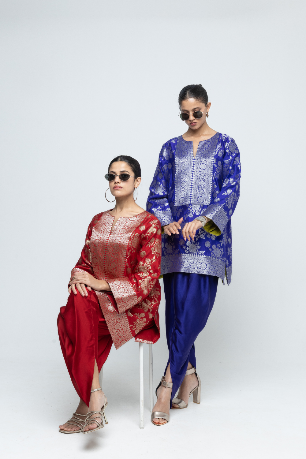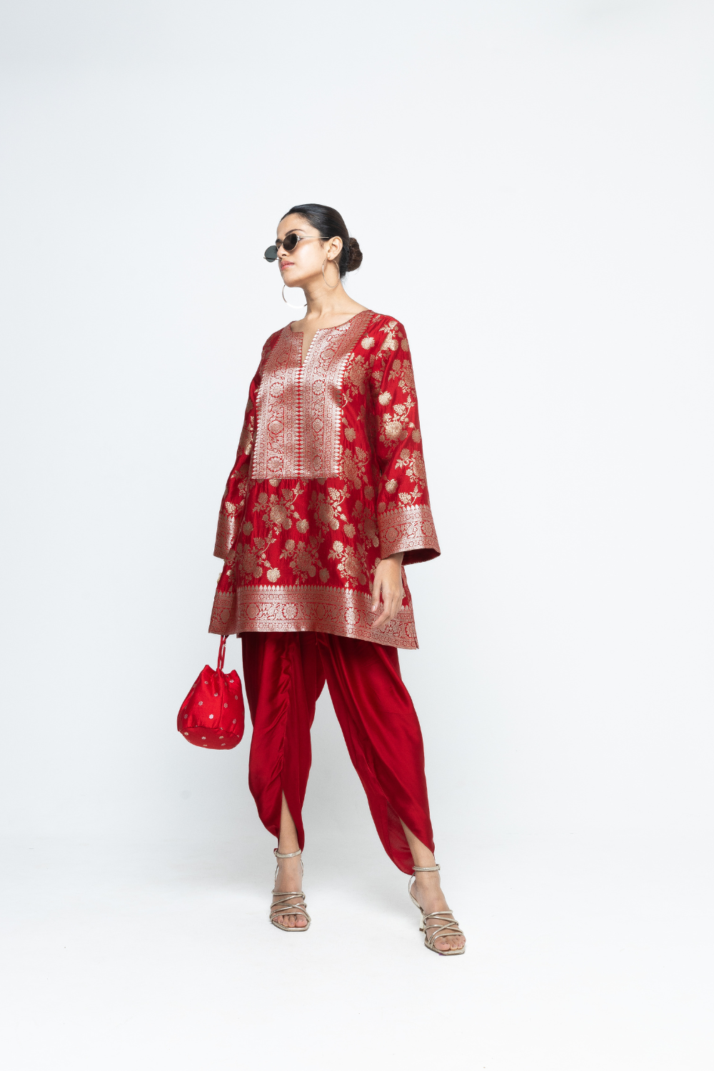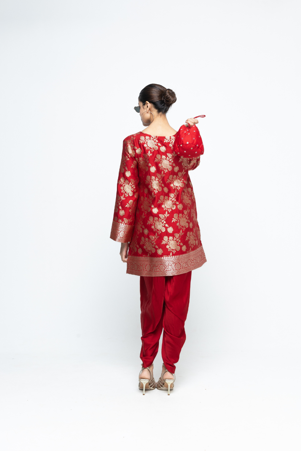 Gul - Floral Brocade kurta with Dhoti - Red