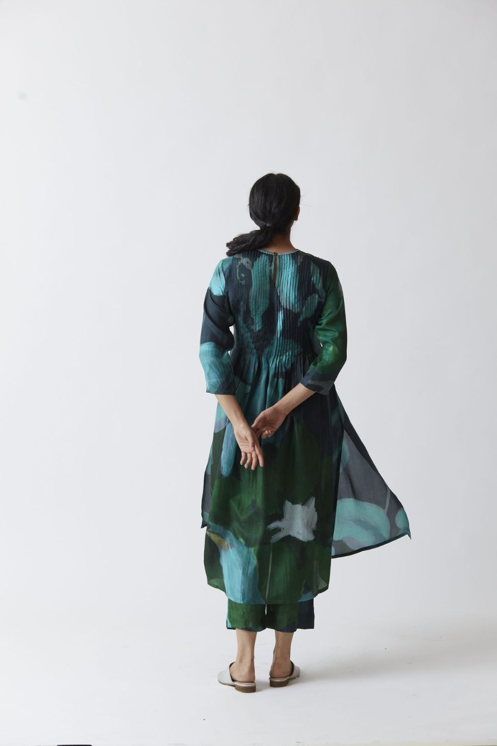 Priya’s strength lies not just in the imagery she creates, but in how she translates it onto silhouettes that honour real bodies. Her pieces are designed with ease and movement in mind — styles that drape, soften, and adapt effortlessly across sizes and shapes. Nothing feels intimidating; everything feels wearable.