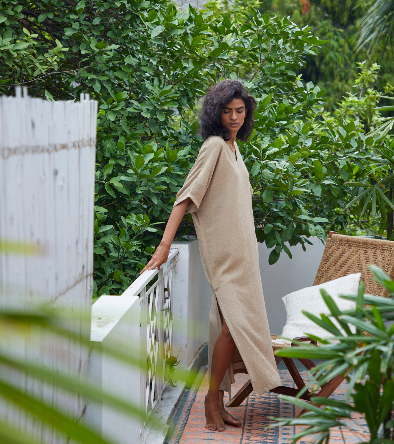 Each piece is grounded in India’s textile heritage yet designed for a woman who moves easily between cultures and climates. The brand’s commitment to homegrown cotton, artisanal processes, and clean, breathable shapes has made these garments not just beautiful, but deeply wearable.