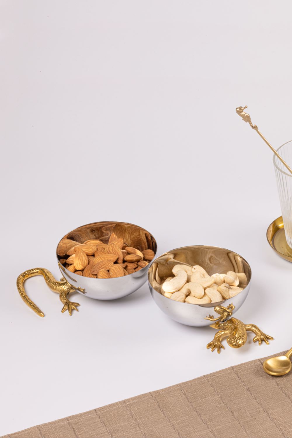 Hand-crafted in brass and stainless steel, our gecko nut bowls combine quirk & elegance to create the best conversation starter! Handmade in India.
