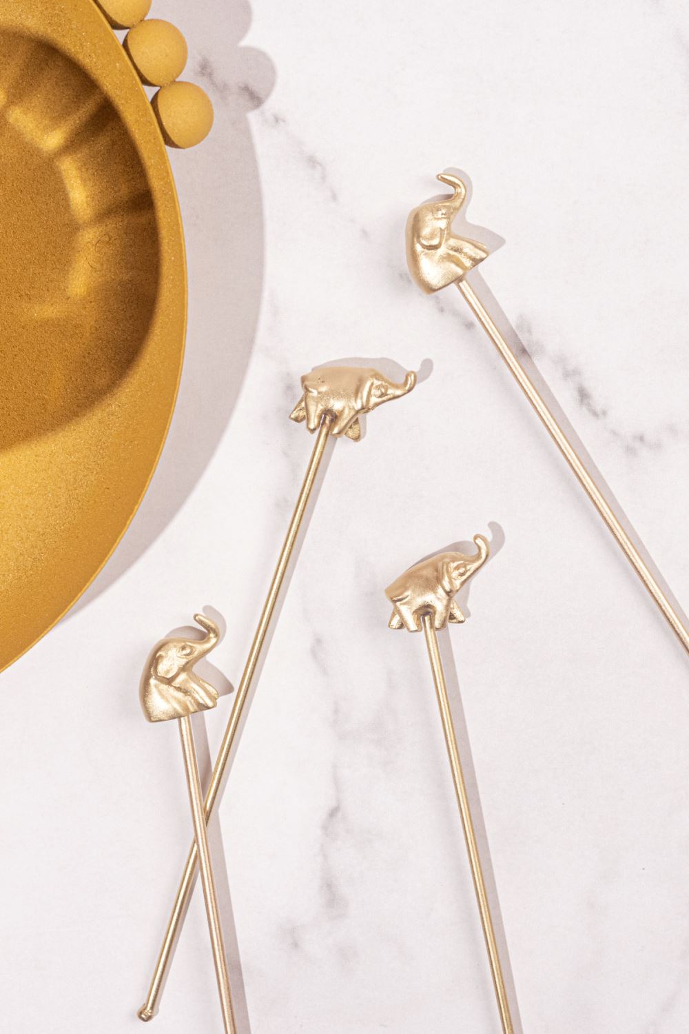 Handcrafted in brass and already a best-seller, our Haathi stirrers make the quirkiest addition to your bar. Each set features two sitting and two standing elephants. Handmade in India.