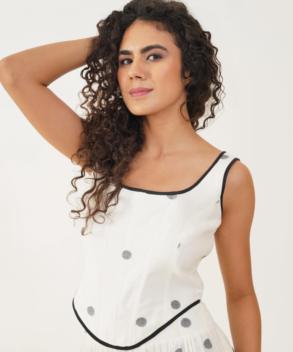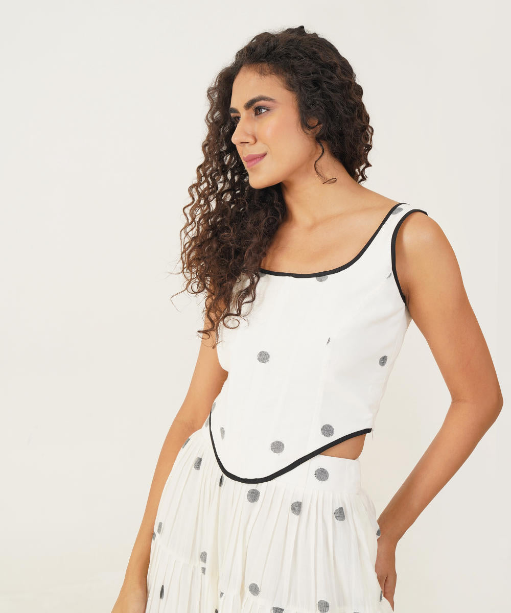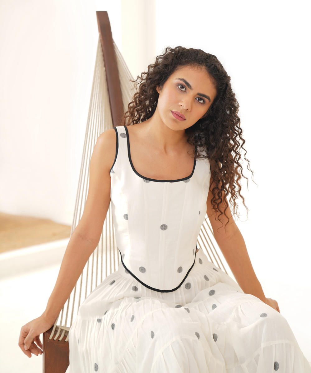 Make a striking impression with our impeccably tailored corset. Designed with a dramatic deep square neckline and featuring contrast panel detailing, this corset seamlessly blends sophistication with bold style. The side zipper fastening ensures a sleek, tailored fit, while the elasticated back offers added comfort and flexibility. Perfect for turning heads and making a statement, this corset is a standout piece for any fashion-forward wardrobe.