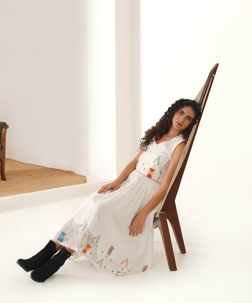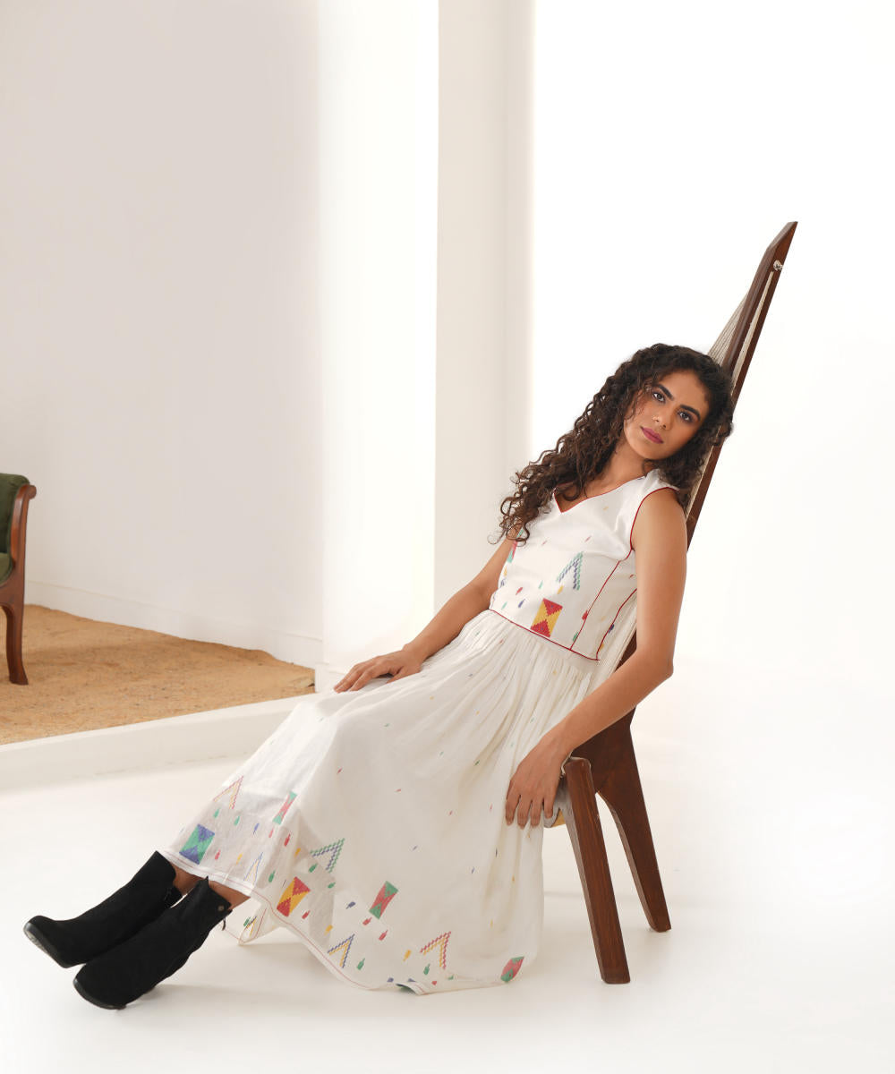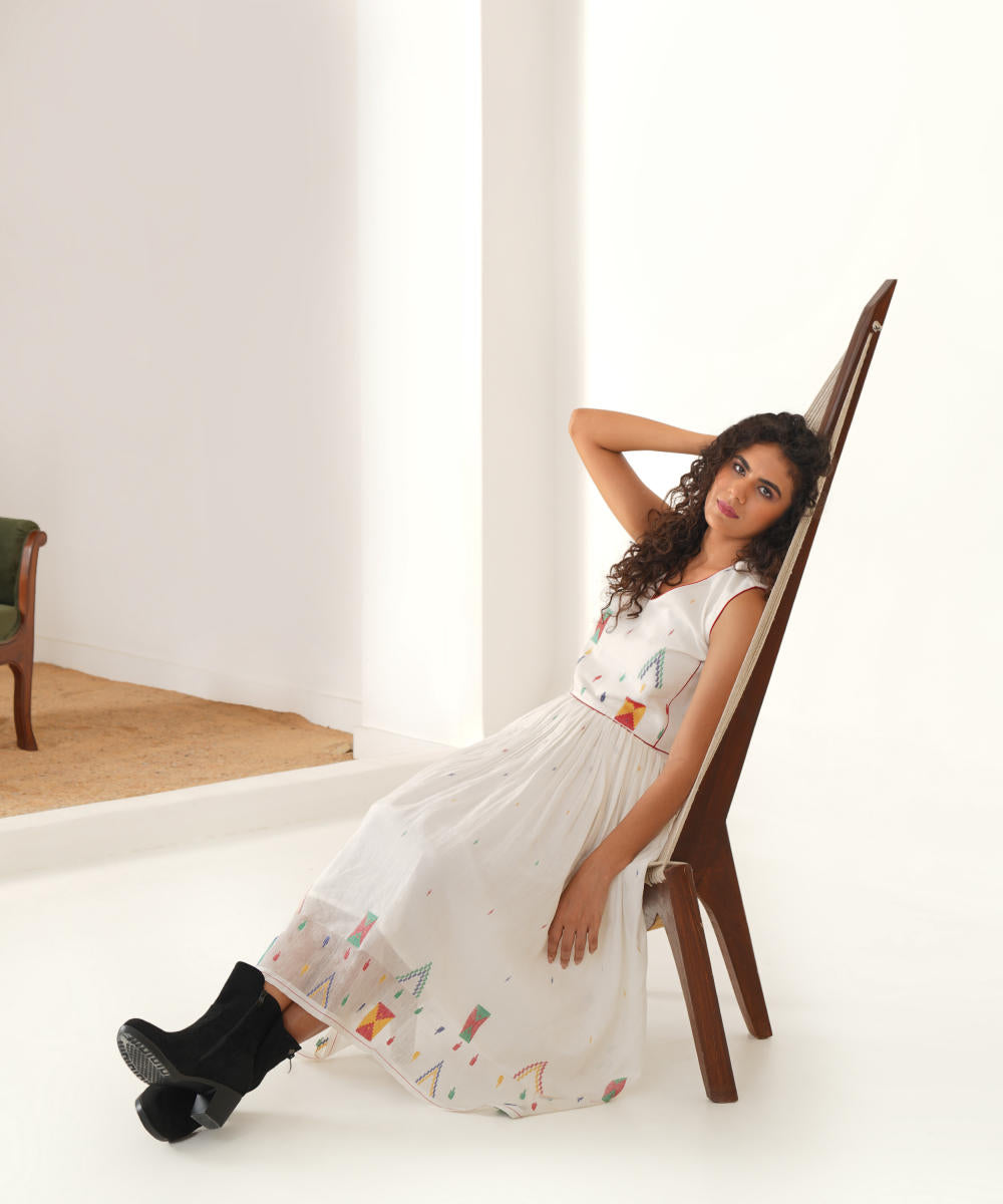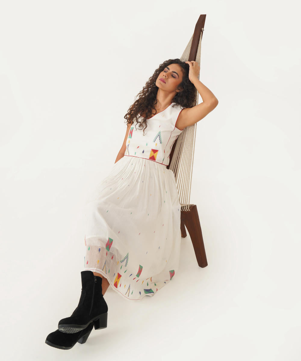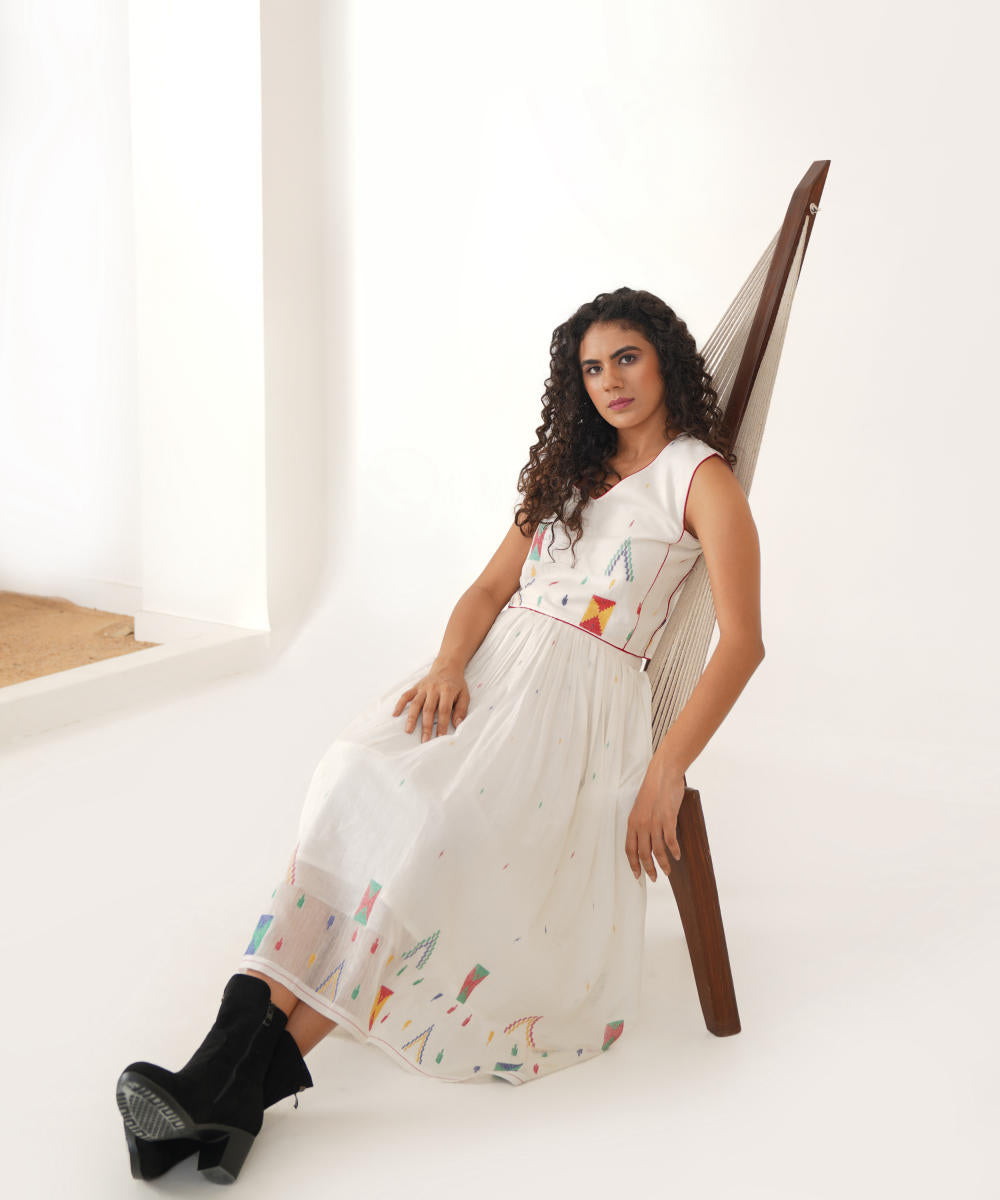 A stunning Jamdani ensemble that merges elegance with sustainability. This beautiful set features a delicately gathered skirt with convenient side pockets, offering both style and practicality. The coordinating top is enhanced with striking contrast piping detailing, and the back zipper closure adds a modern touch. Thoughtfully crafted with sustainability in mind, this ensemble is a perfect addition to a mindful wardrobe, combining timeless design with eco-conscious appeal.