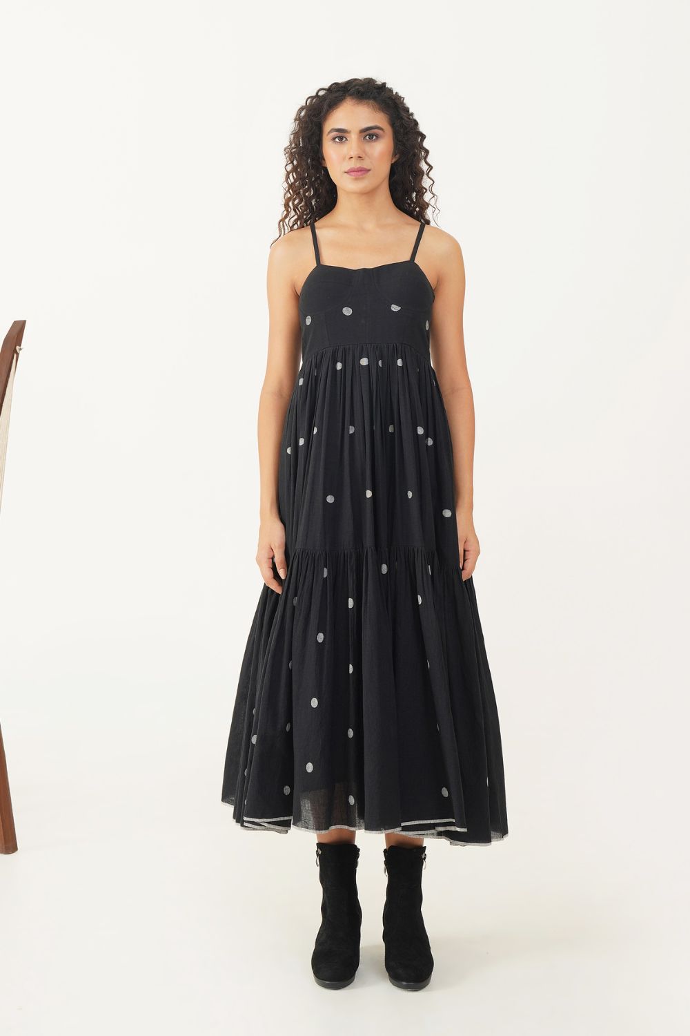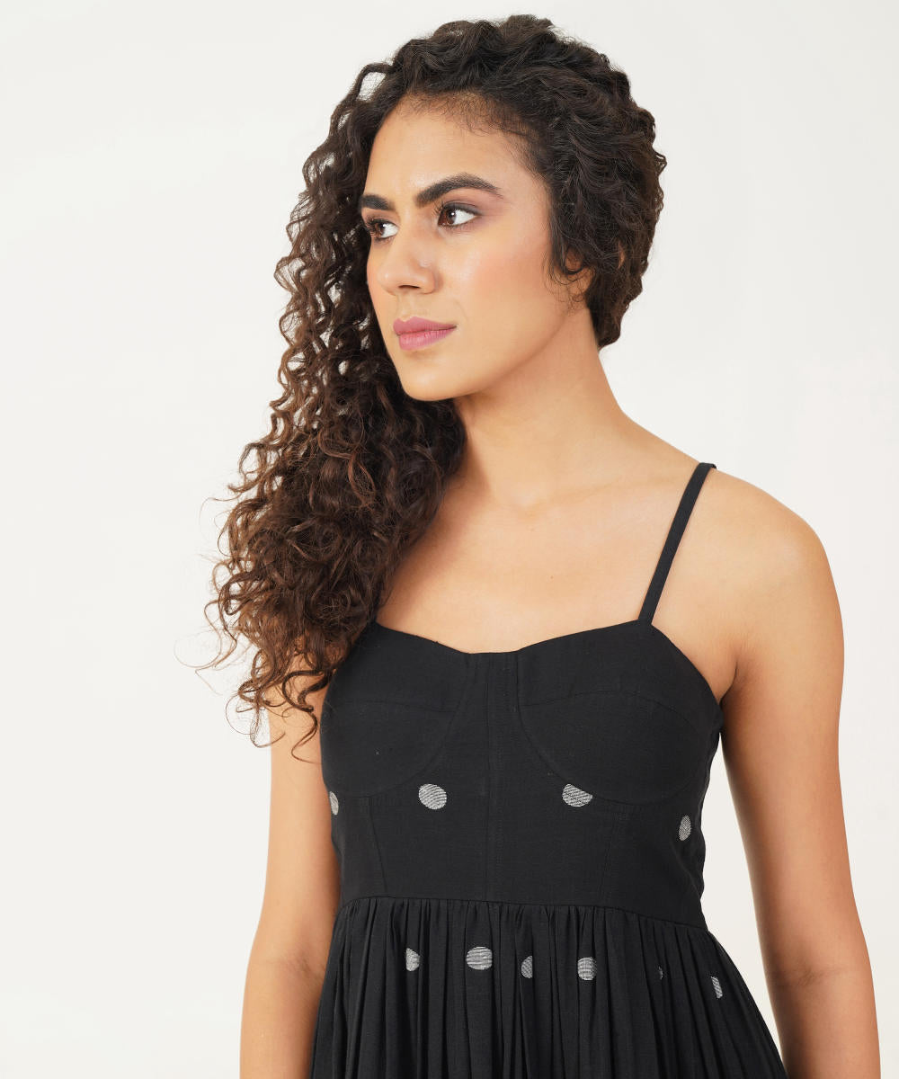 Discover the allure of our Jamdani bralette dress, crafted with delicate noodle straps and adorned with gentle gathers that enhance its elegant silhouette. The back zipper fastening ensures a seamless fit, while the thoughtful inseam pockets offer both functionality and a sleek finish. This dress combines classic craftsmanship with modern convenience, making it a chic and versatile addition to any wardrobe.