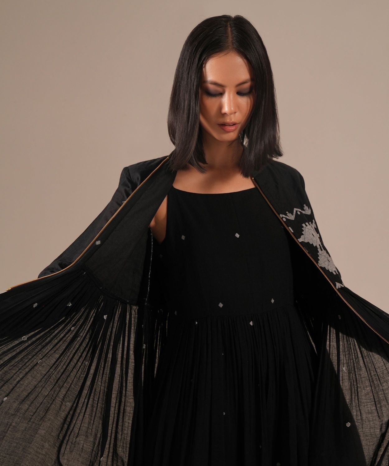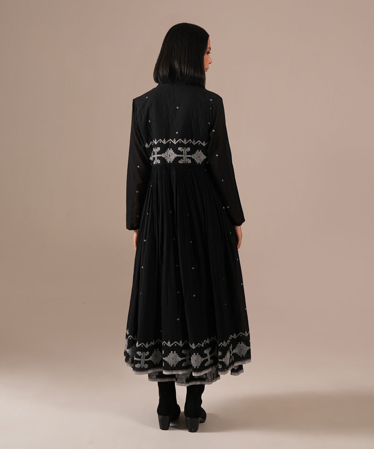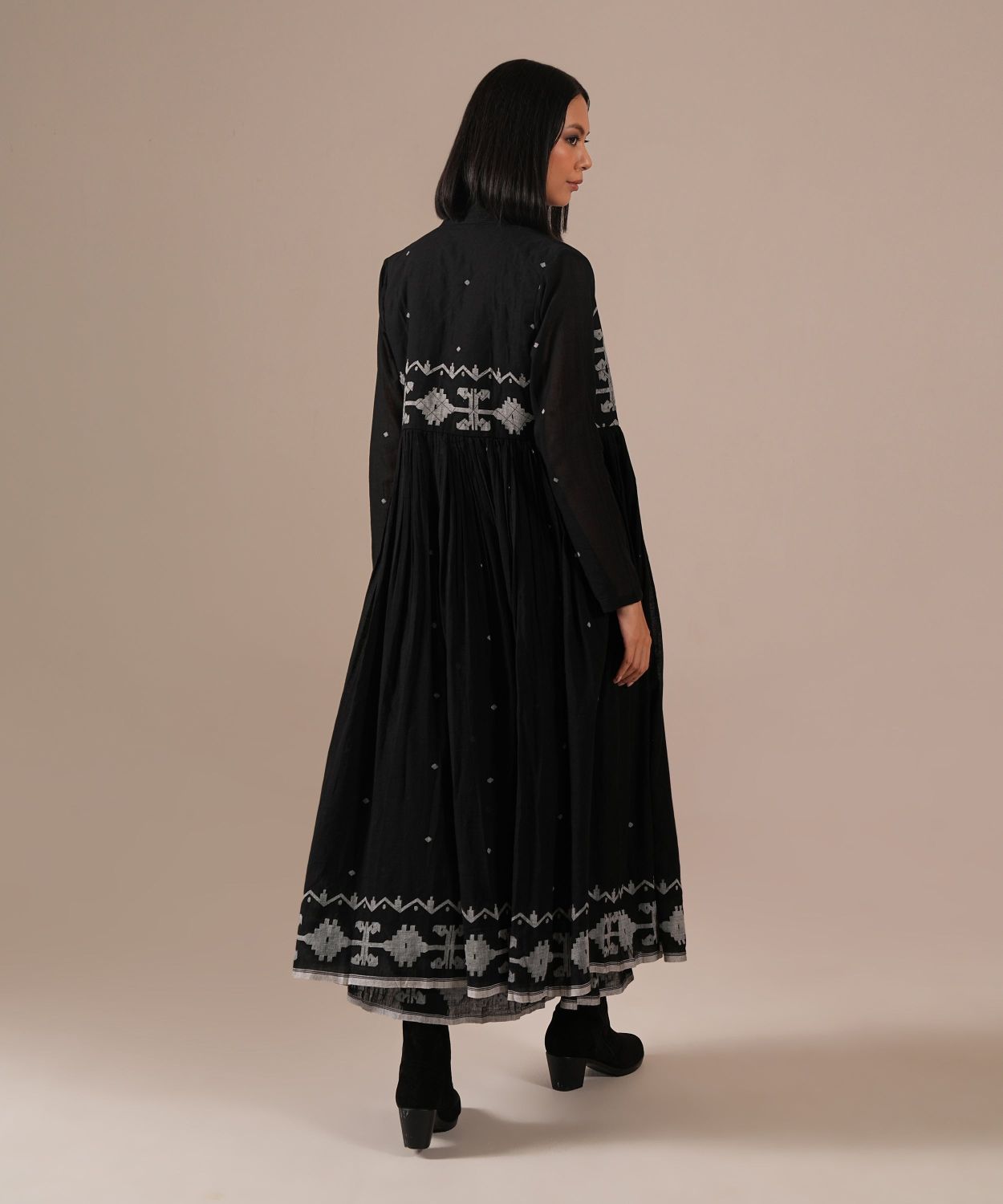 Jamdani over Jamdani. A wearable work of art featuring an intricately woven gathered inner dress paired with a matching Jamdani overlay with voluminous gathers, quilted bodice and front metal zipper.