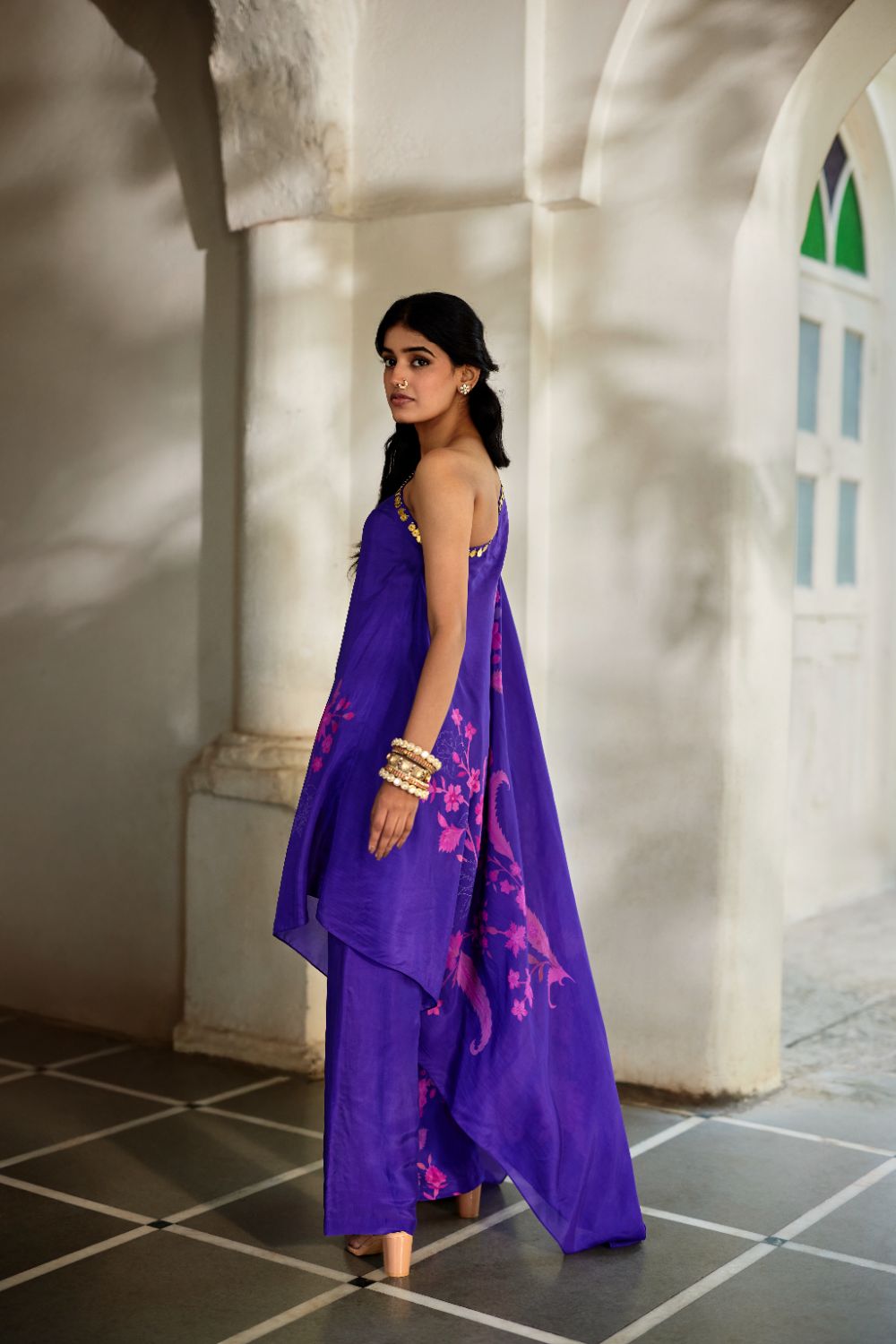 Their pieces don’t whisper heritage; they make it gleam, shimmer, and come alive with prints that feel freshly painted. The label is defined by its signature fusion of heritage hand-embroidery techniques like aari and zardosi, paired with contemporary hand-painted prints that have become their unmistakable calling card.