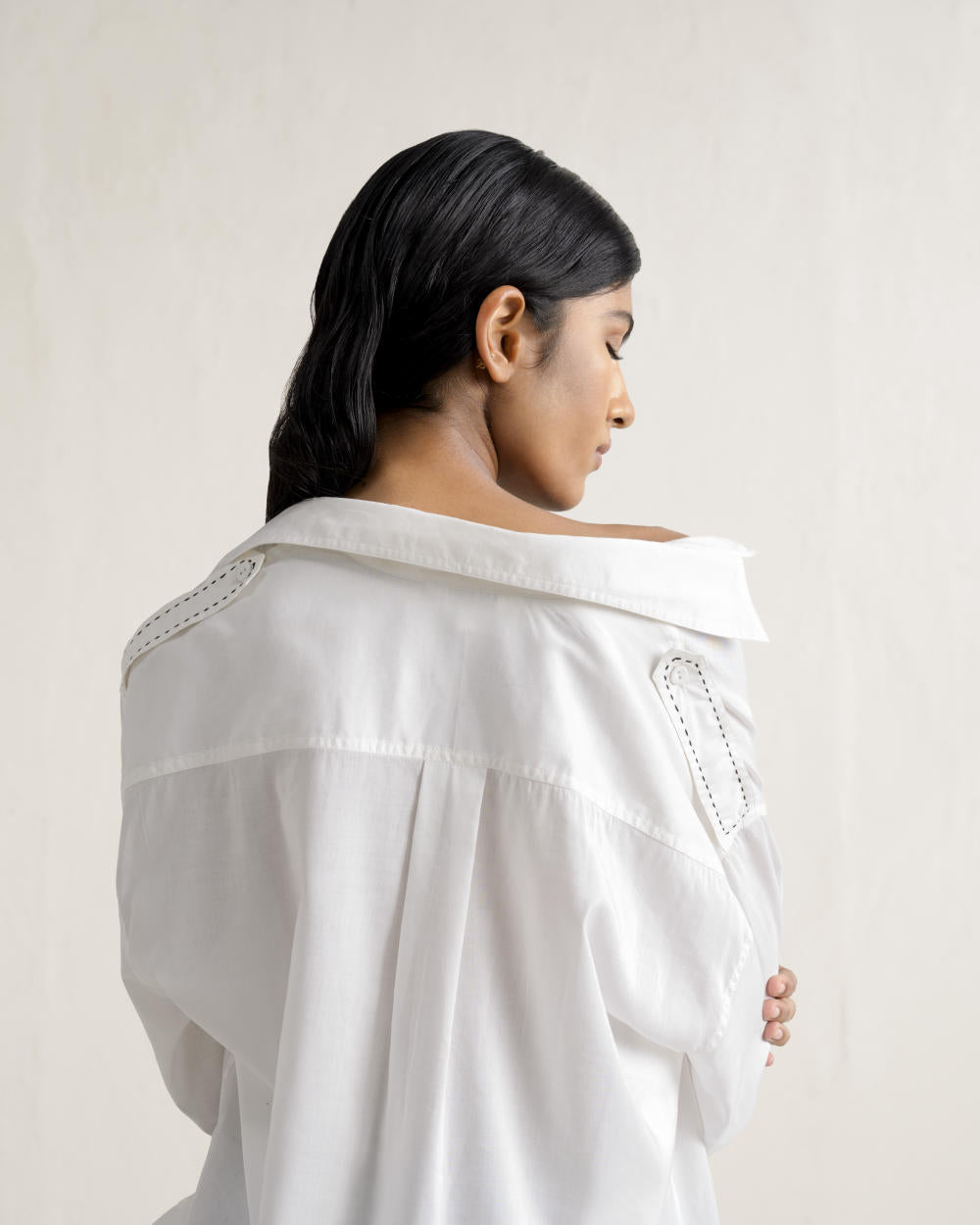 Shoulder epaulettes featuring signature Kantha stitching