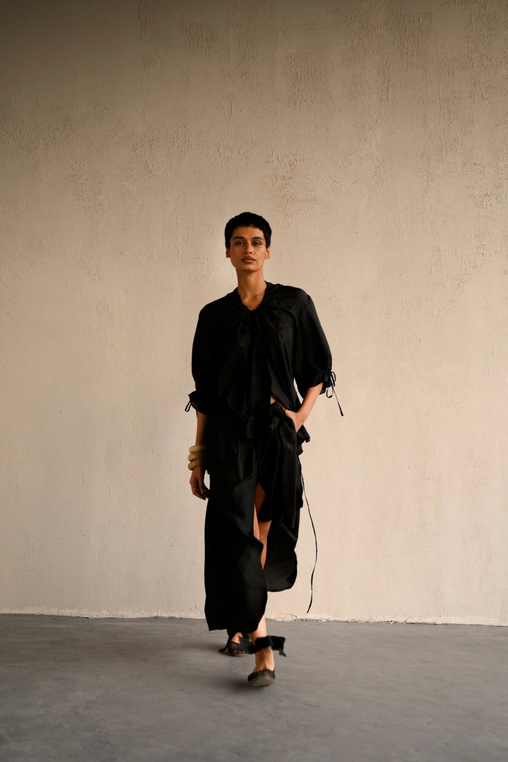 The brand’s silhouettes are thoughtfully designed to flow with you, not against you. From versatile dhoti pants that transform into dresses to garments inspired by ancient techniques like kantha handwork, Ituvana redefines how clothes can move with the rhythms of life.