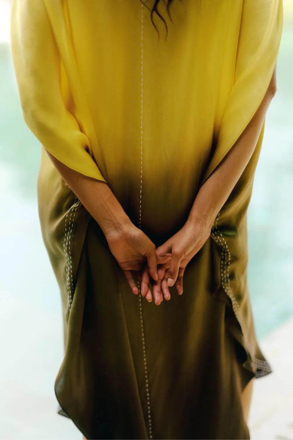 Dip-Dye ombré fade flowing from luminous yellow into deep, earthy tones