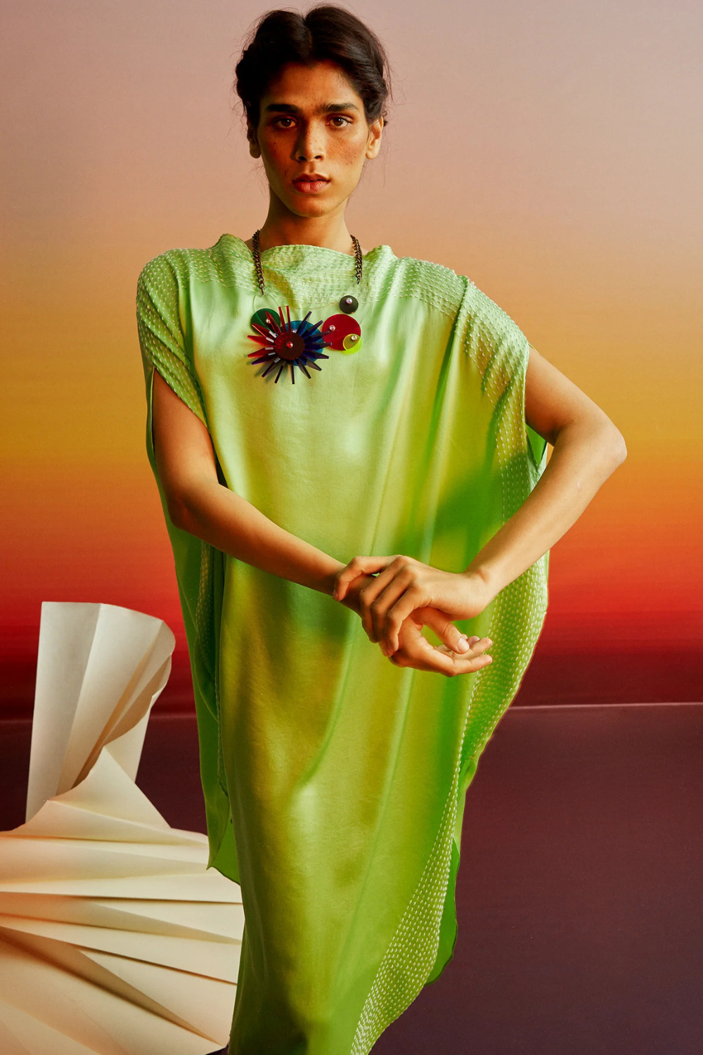 A fluid silhouette that embodies elegance, crafted from fine, lightweight silk, with our signature stitching that delicately adorns the body.