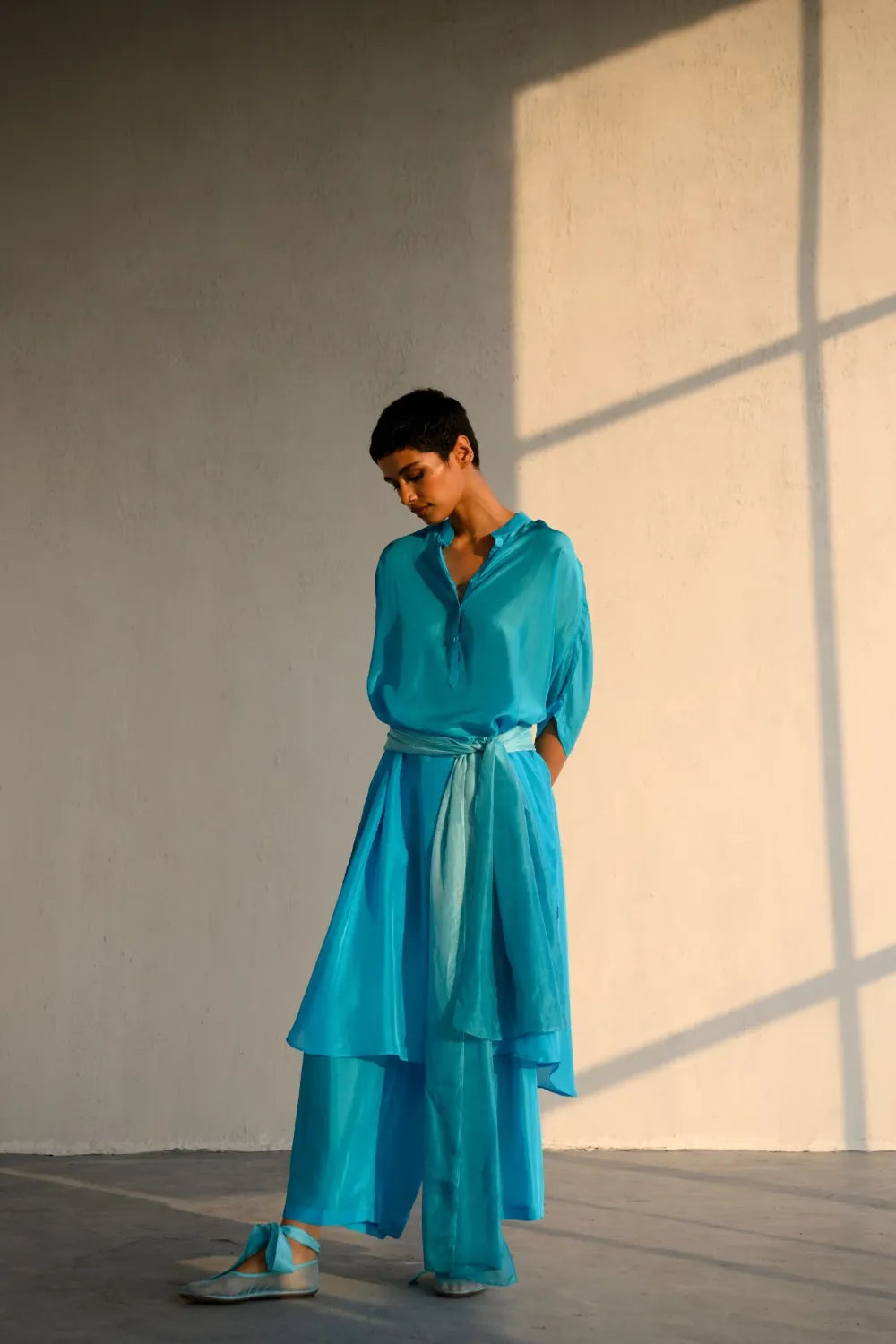 Made in featherlight silk, this one-size set is designed for an easy, loose fit that drapes effortlessly on the body.