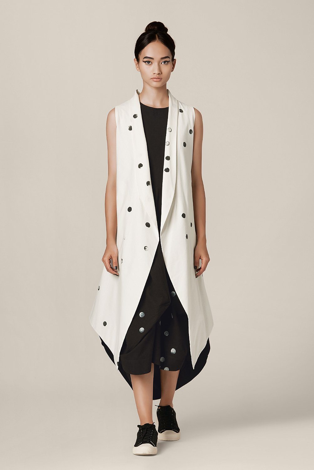 The Ciara jacket features a shawl collar, curved hem and a button down placket at the back. Made using organic cotton.