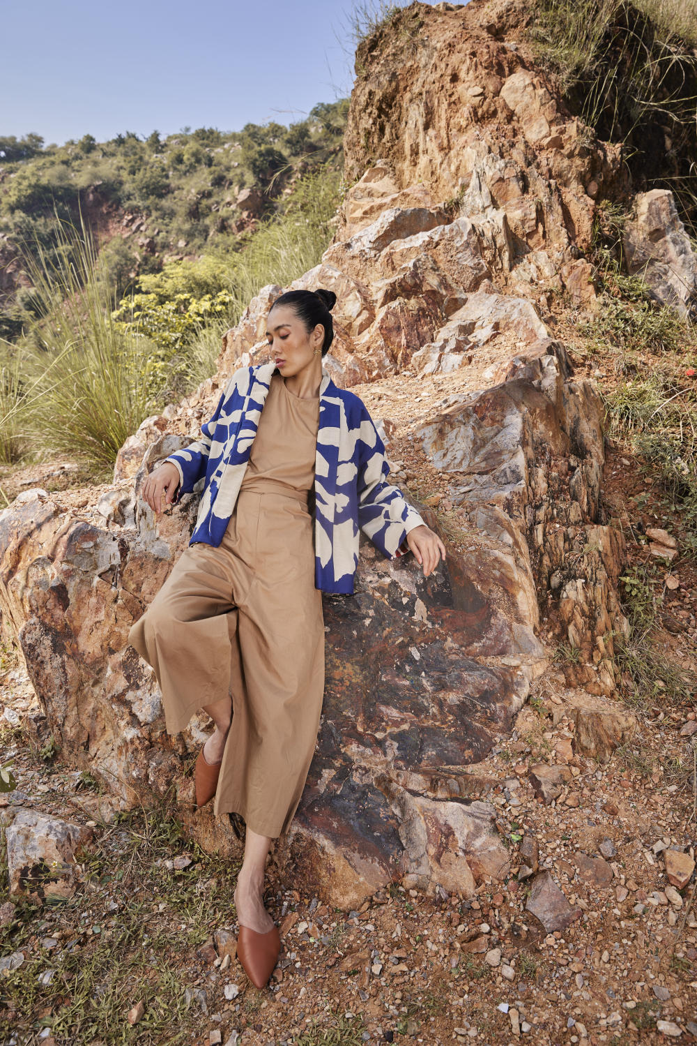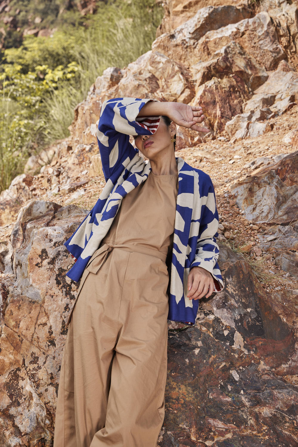 Rooted in handloom cotton and natural dyes, Khara Kapas works with the simplest geometry — circles, squares, triangles — and turns them into silhouettes that feel effortless, global, and emotionally familiar. There is a stillness to their clothes, a sense of returning to slower rhythms and honest materials, without ever losing relevance.