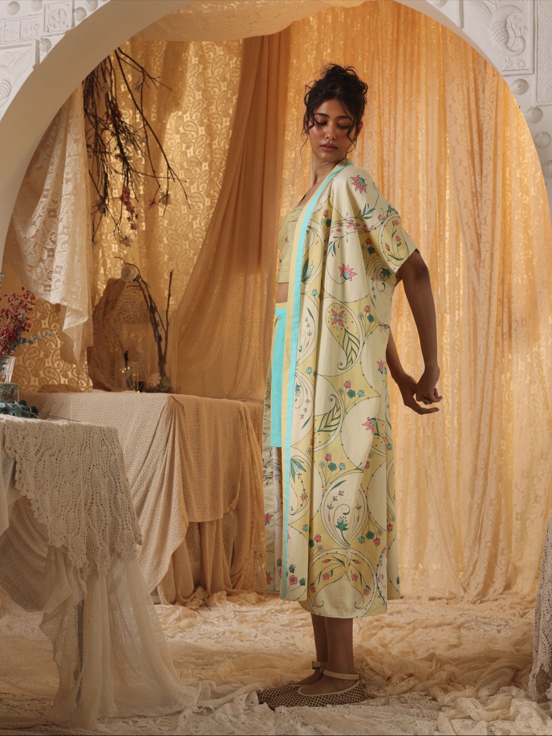 Bright, breezy, and ultra-light, this yellow floral cotton jacket is the