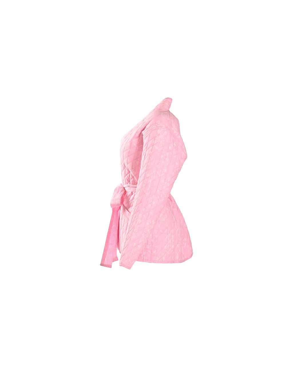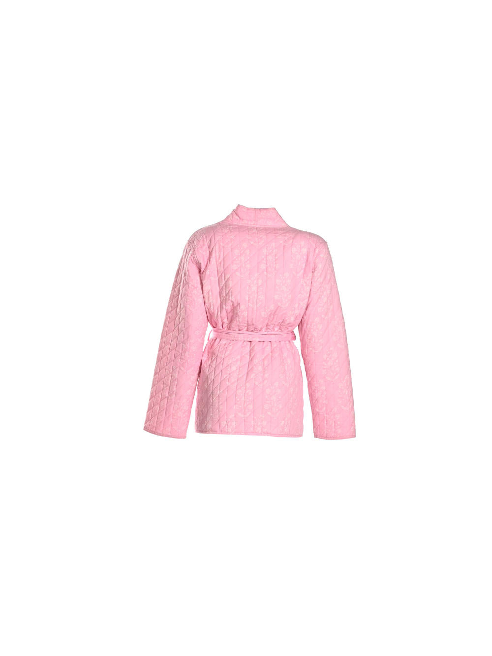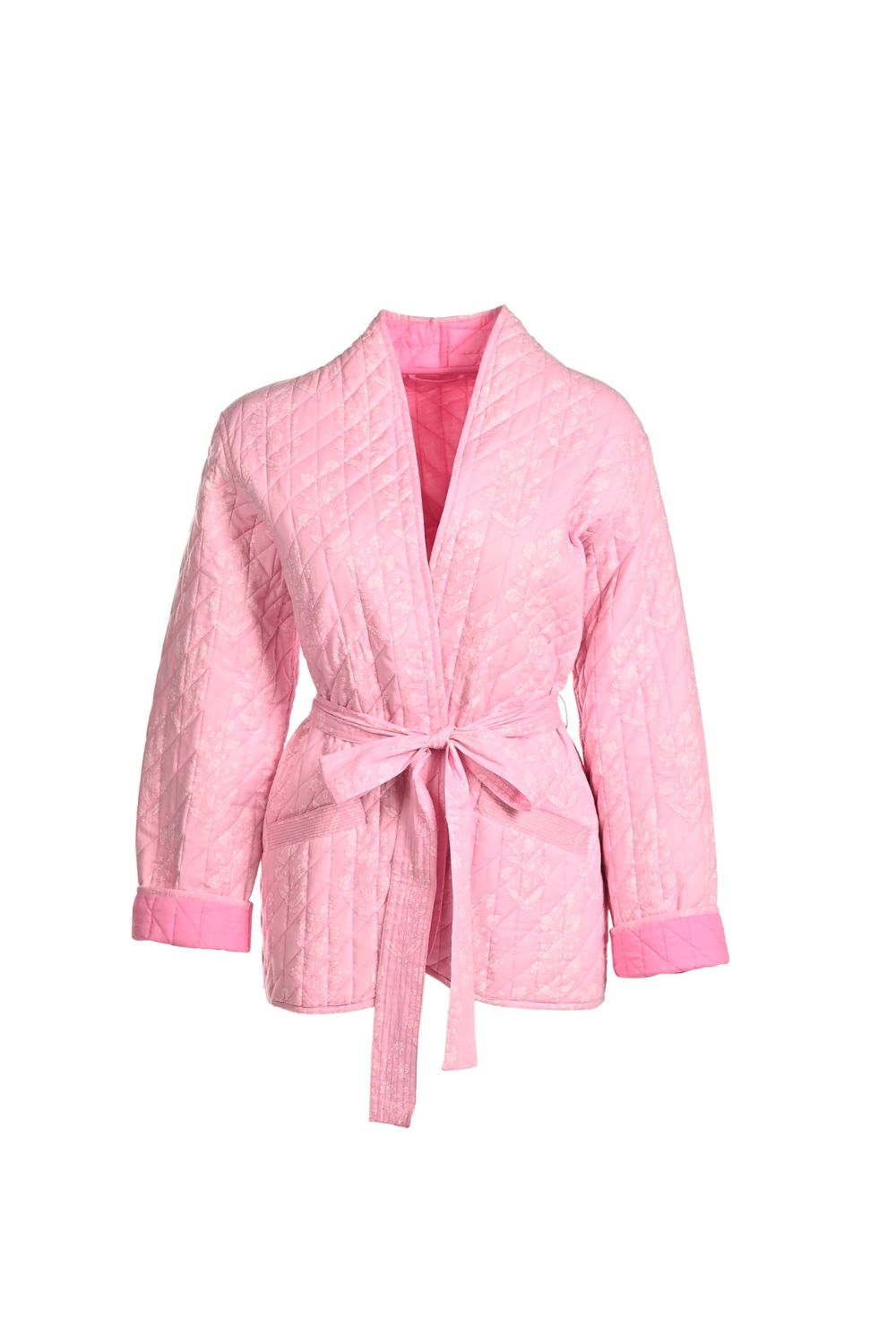 This mid length jacket is quilted with cotton wool & comes with a belt.It has cotton mul on one side and cotton satin on one side.The cotton mul is printed in a floral repeat motif printed by our partner artisans in the nearby village of Sanganer.