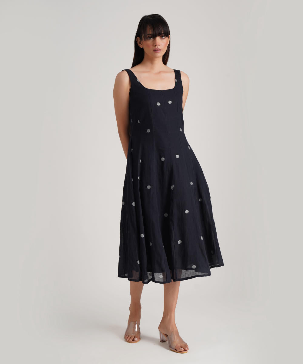 The jamdani fit-and-flare dress featuring a deep square neck, back zipper fastening, and kali/panel detailing is perfect for your summer.