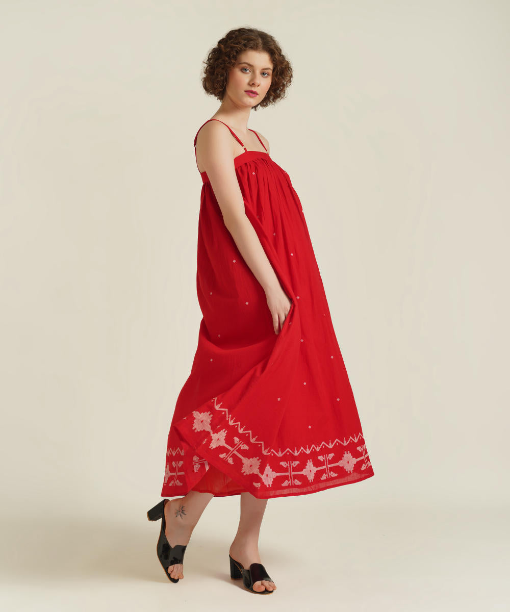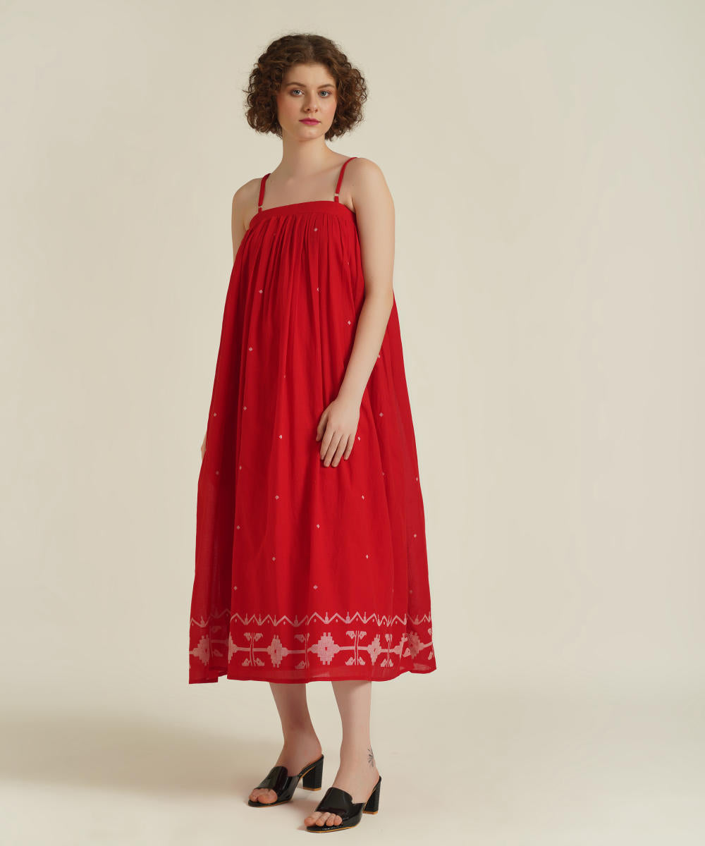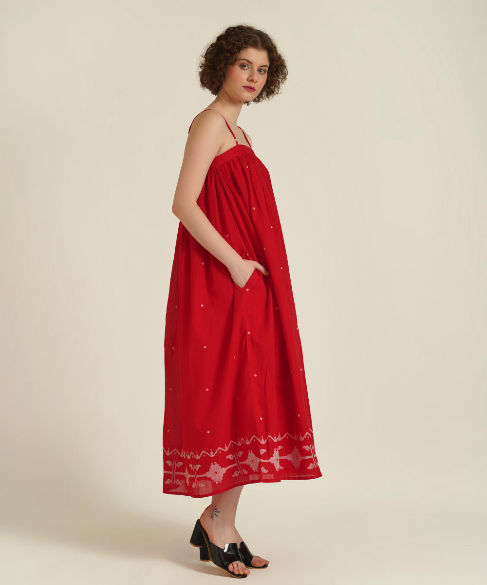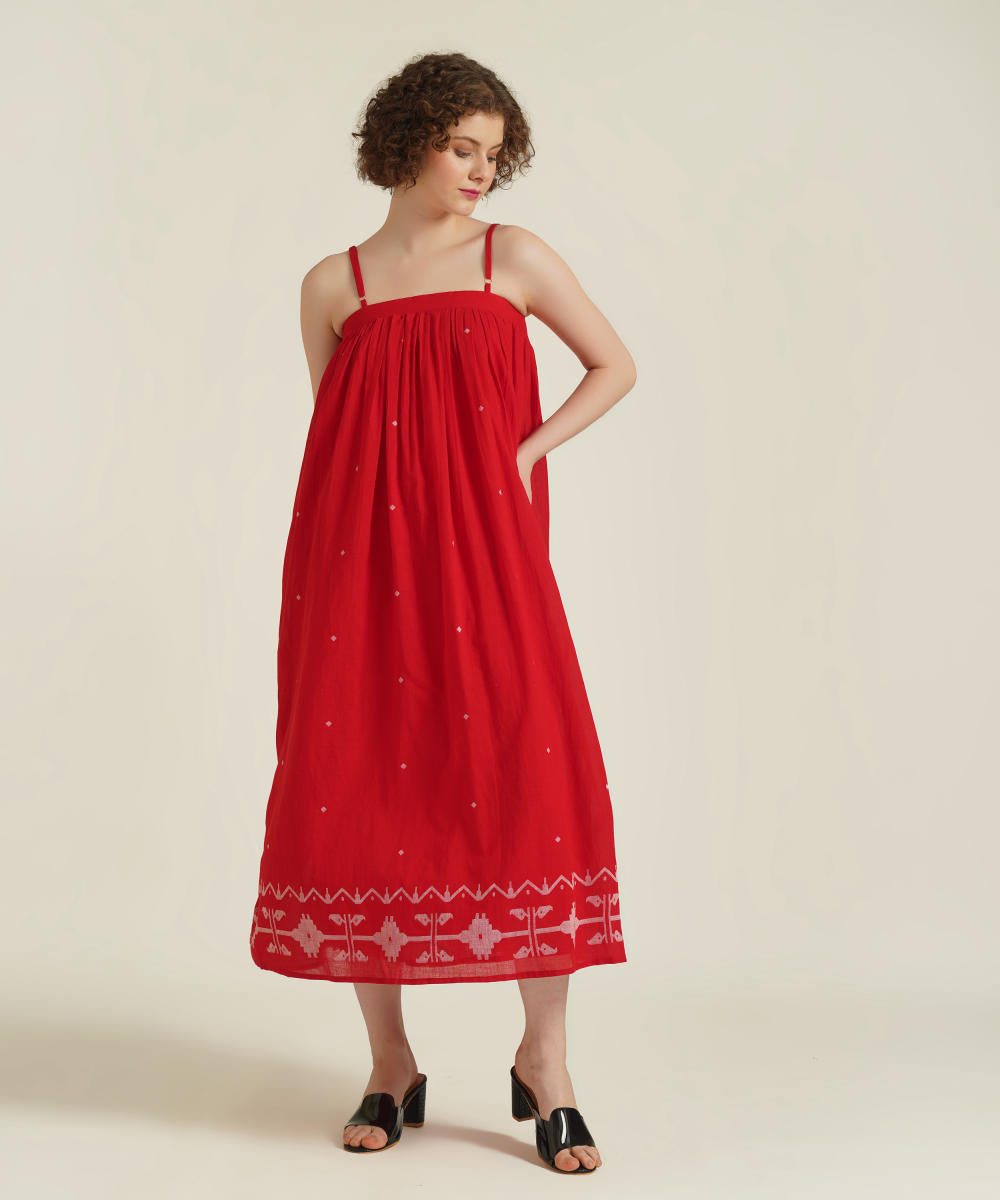 A classic strap dress features adjustable spaghetti strap, gentle gathers at yoke and comes with side pockets.