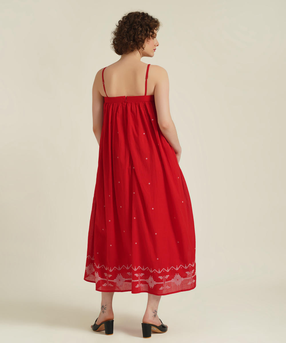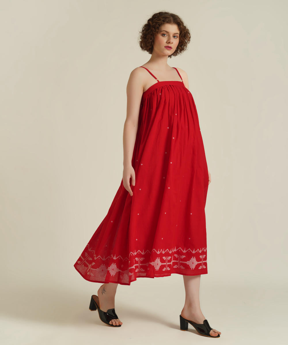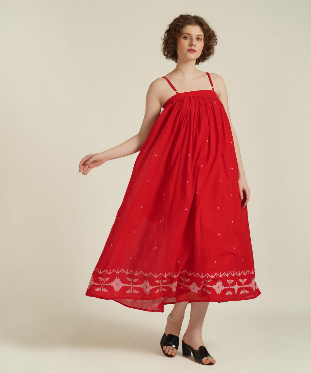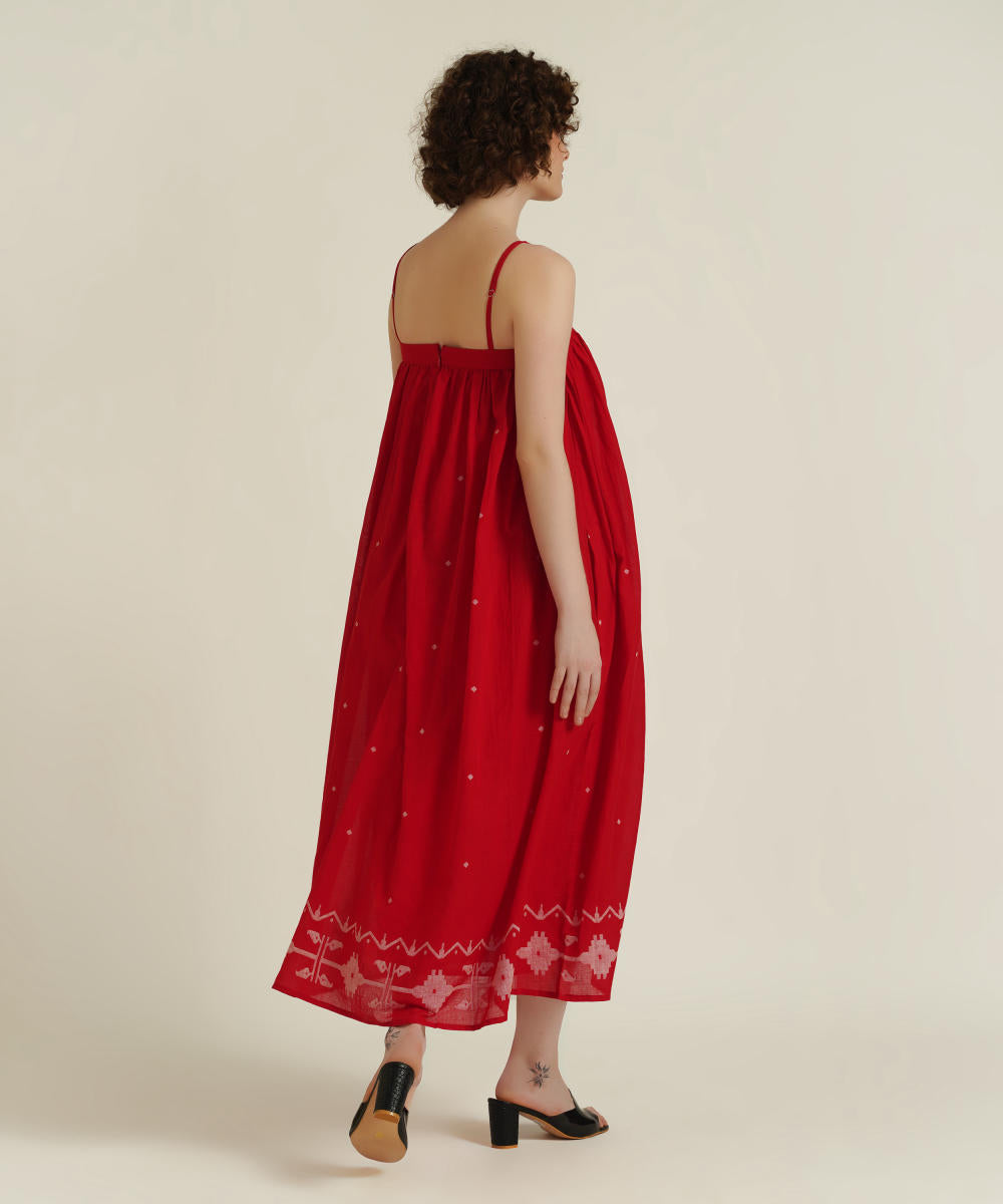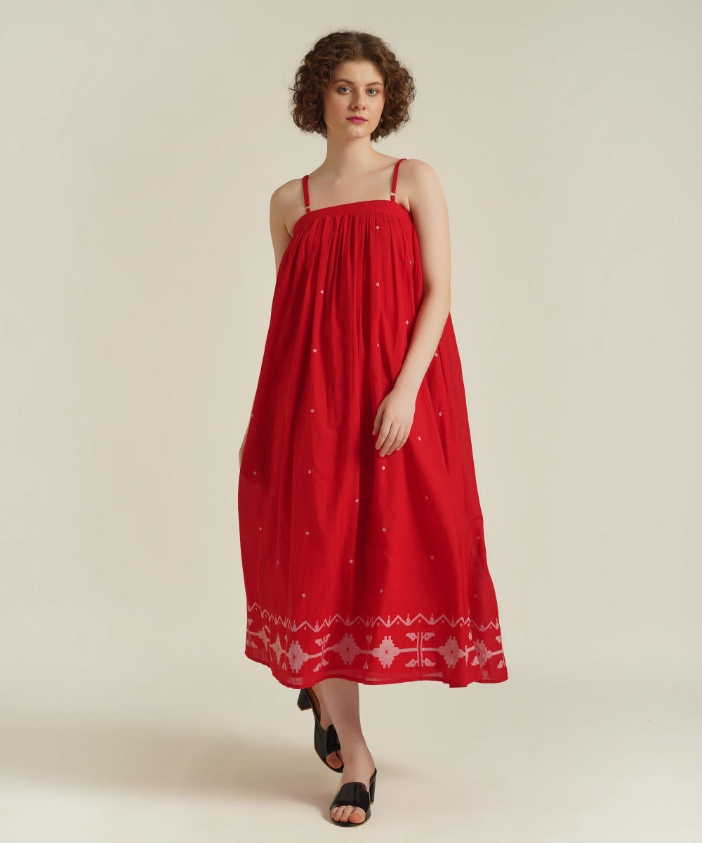 A classic strap dress features adjustable spaghetti strap, gentle gathers at yoke and comes with side pockets.