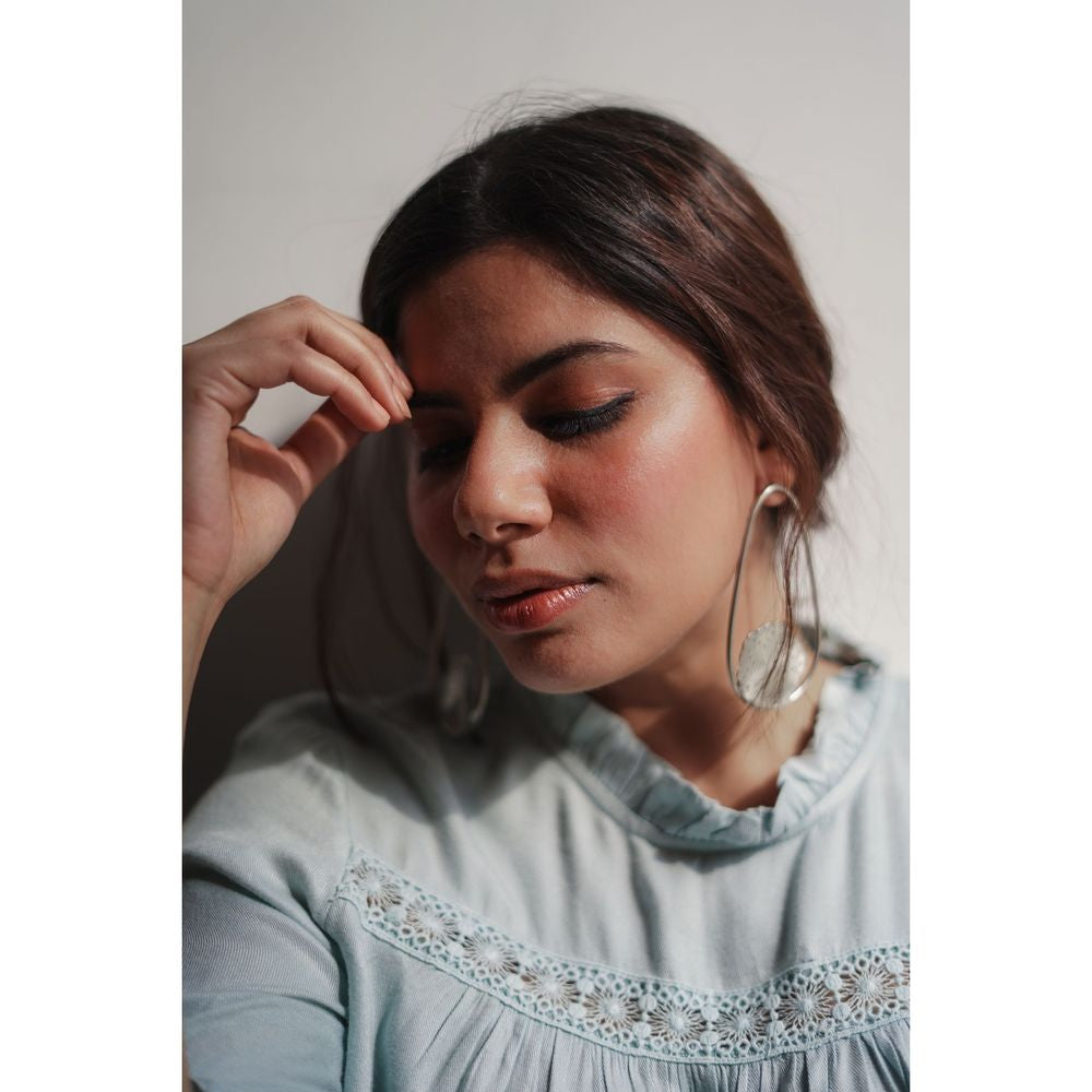 Care Instructions: Our jewelry pieces are meticulously handcrafted in brass and plated with nickel. To maintain your pieces, kindly allow your perfume and hairspray to fully dry before wearing your jewellery. Store your pieces in the provided packaging or any soft cloth bag.