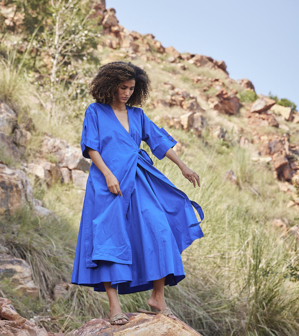 Each piece is grounded in India’s textile heritage yet designed for a woman who moves easily between cultures and climates. The brand’s commitment to homegrown cotton, artisanal processes, and clean, breathable shapes has made these garments not just beautiful, but deeply wearable.