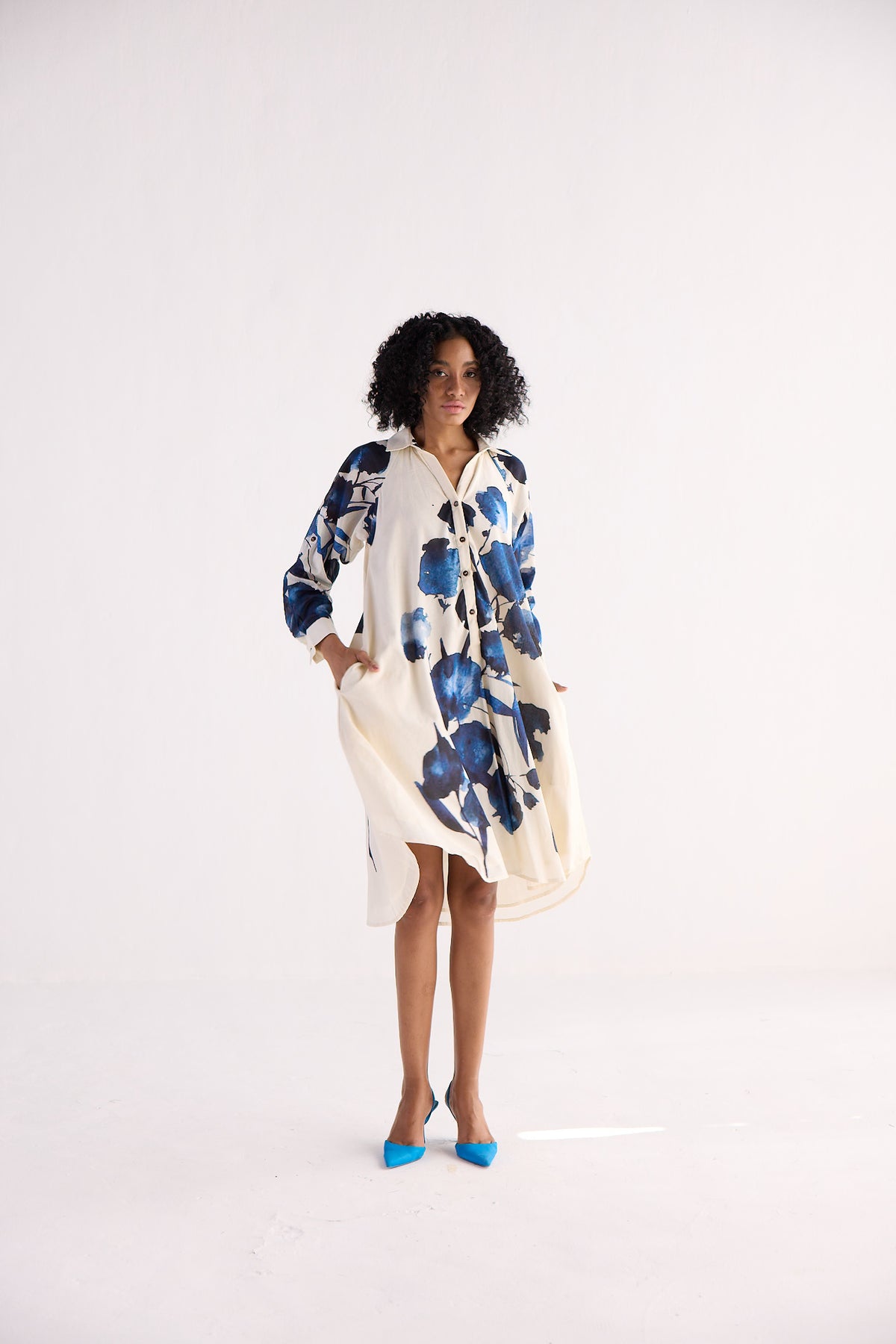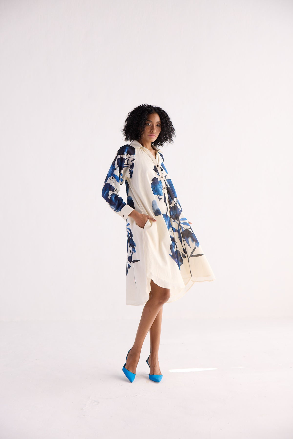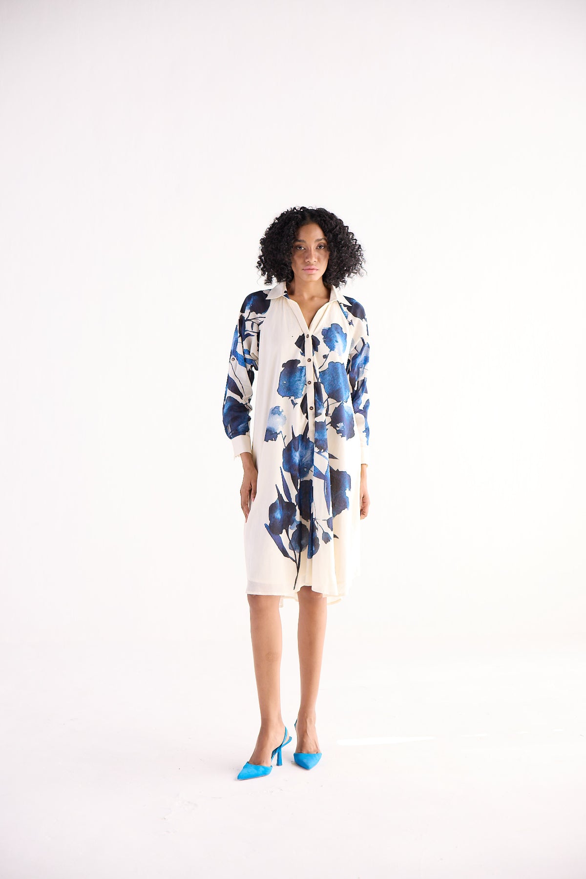 This midi length shirt dress is crafted in soft cotton mul to represent orchid blooms that can also be bold with collar and cuff details featuring a front button opening to give a comfortable outing. Shirt Dress Midi length dress