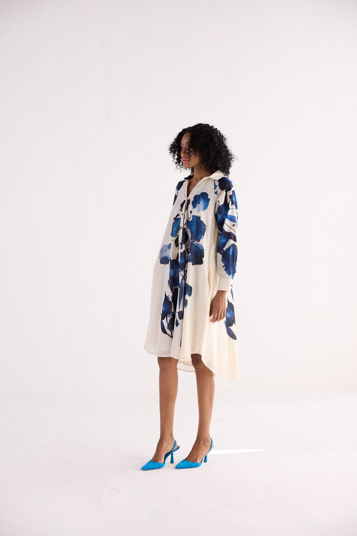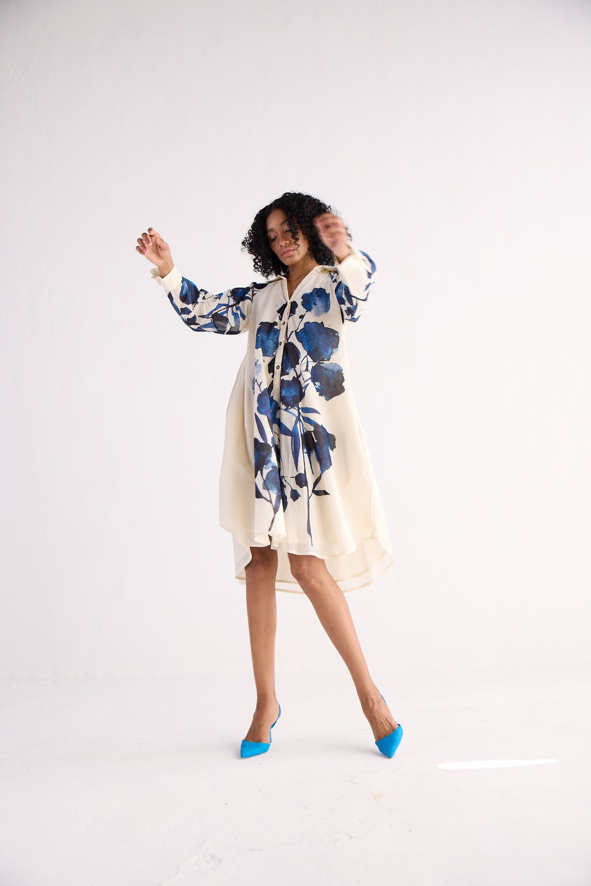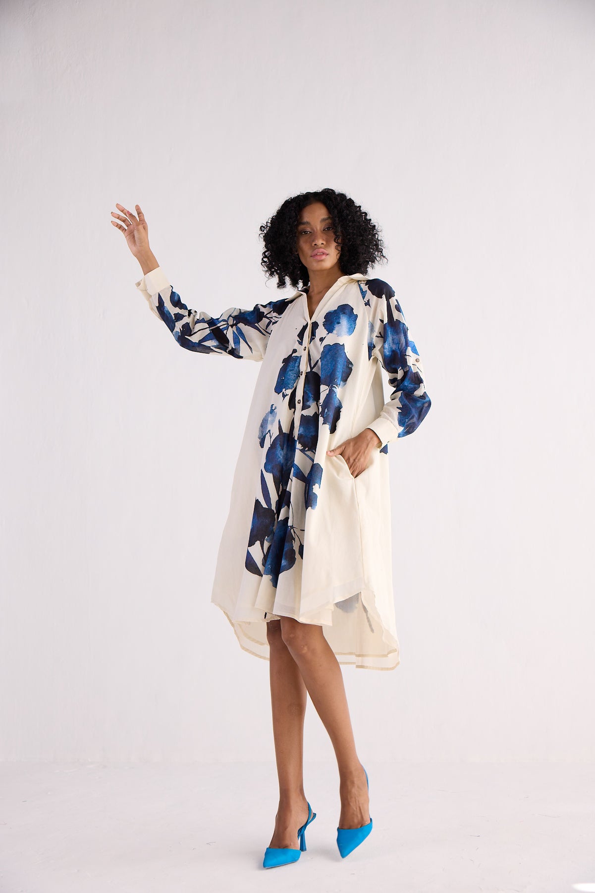 This midi length shirt dress is crafted in soft cotton mul to represent orchid blooms that can also be bold with collar and cuff details featuring a front button opening to give a comfortable outing. Shirt Dress Midi length dress