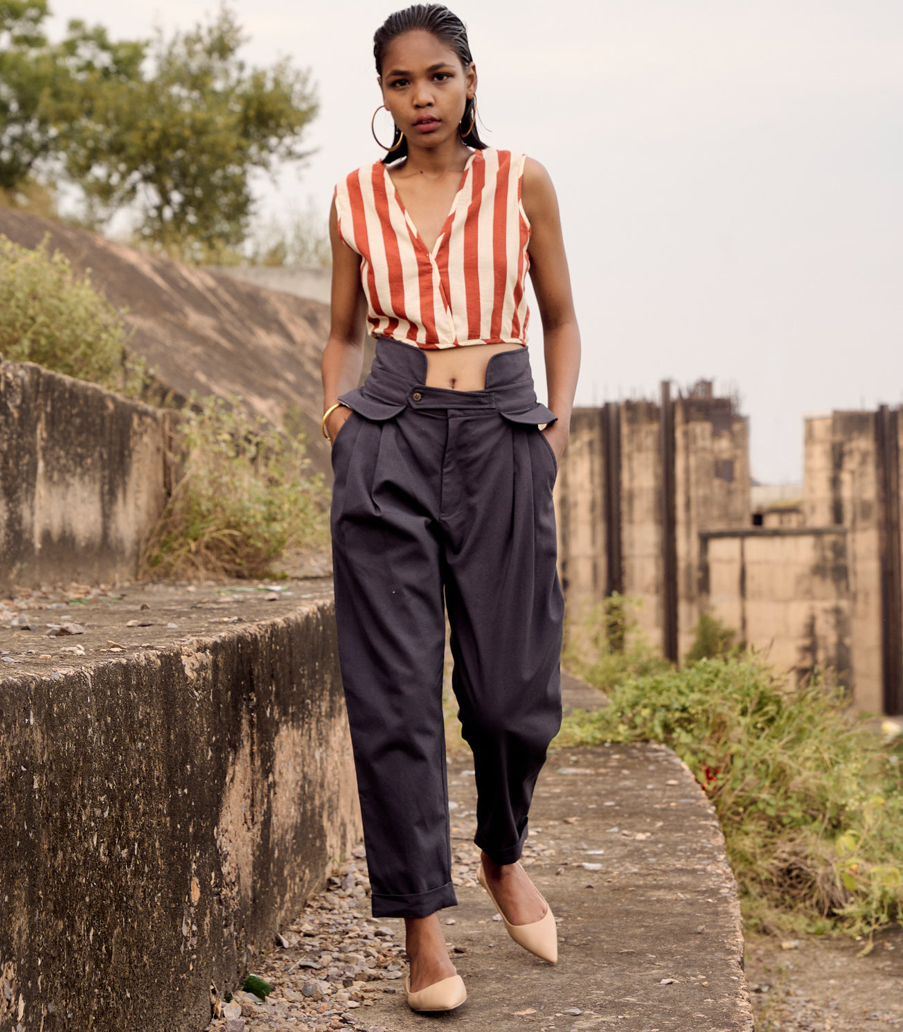 • Model Info: Height: 5 ft. 7 in. | Wearing Size Small