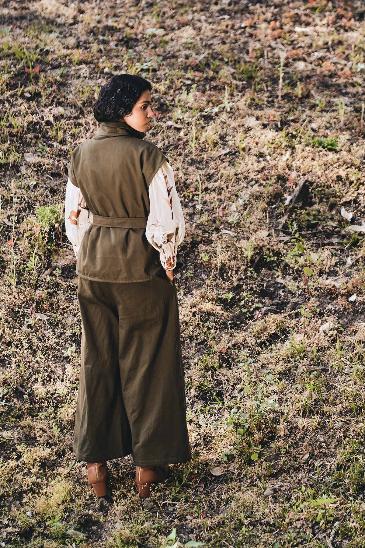 A versatile twill olive green jacket and pants set, inspired by the lush greenery of the highlands. Designed for multiple purposes, this stylish and functional ensemble effortlessly blends nature’s hues with practicality, making it perfect for any adventure or occasion. The pants come with an elasticated back waist and front pleat finishing.