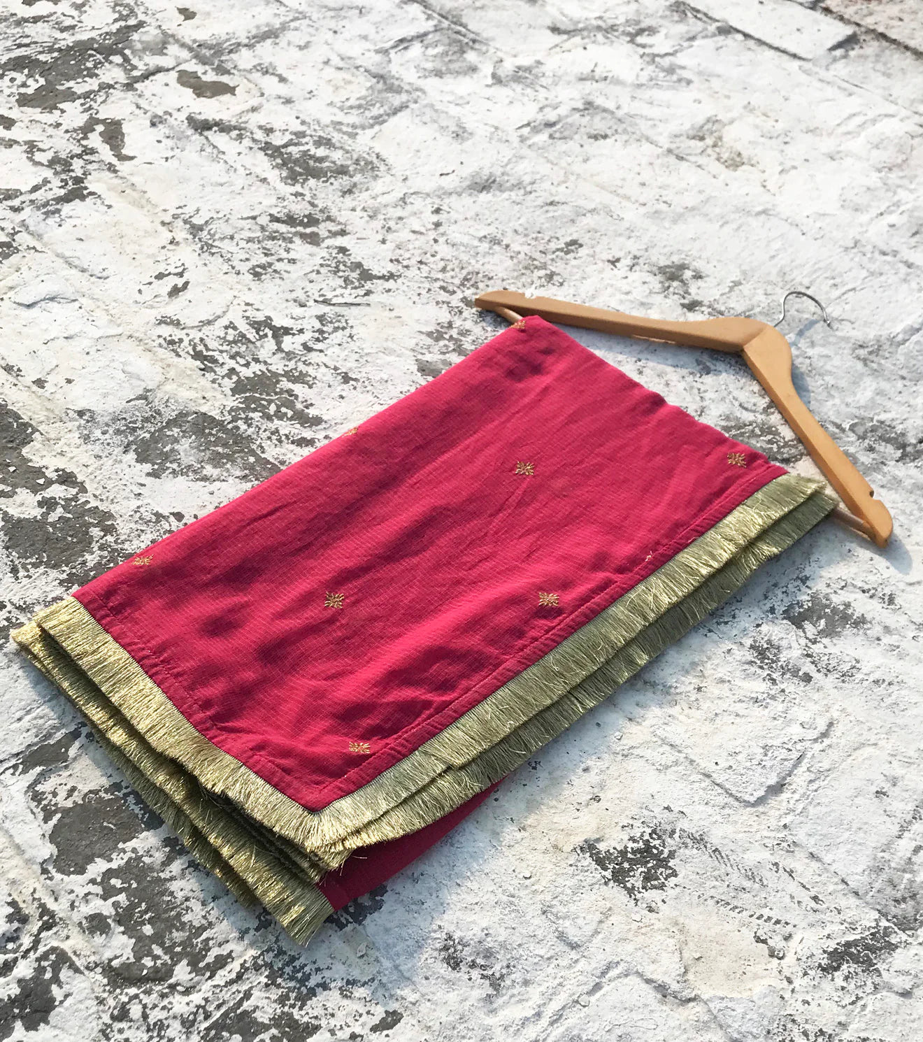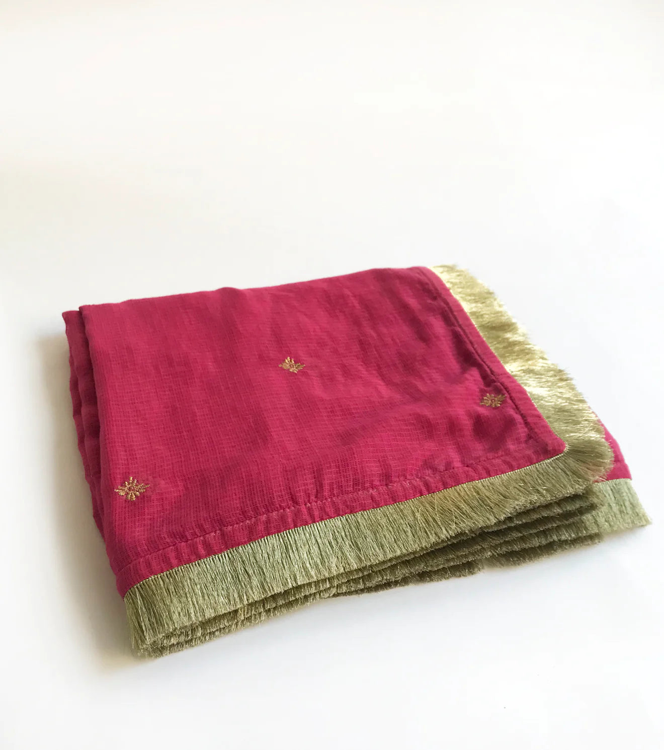 This magenta kota doria dupatta comes with a gota border and overall zari embroidery