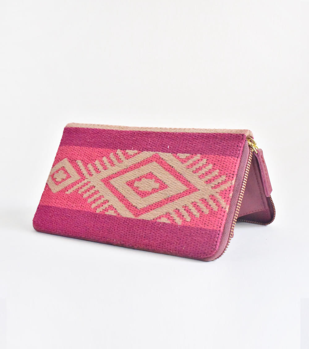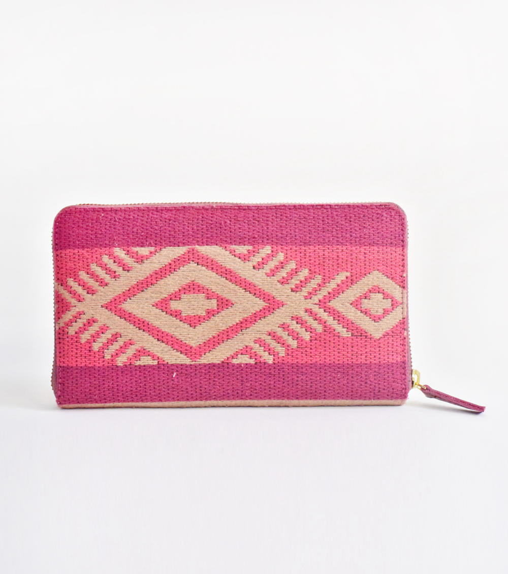 Zip-Around Wallet that effortlessly fits in your routine. Handcrafted in handloom cotton with blue stripe khadi detailing inside. Features 2 compartments one zip pocket and 8 card holder