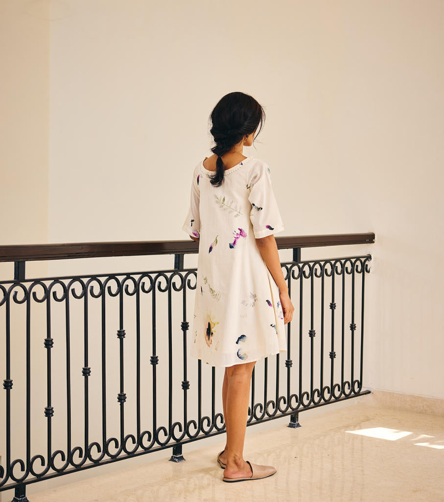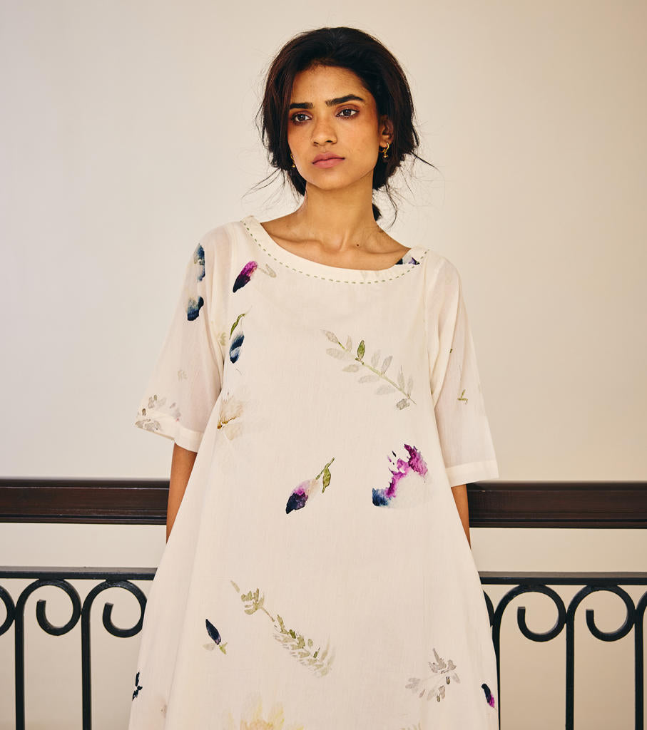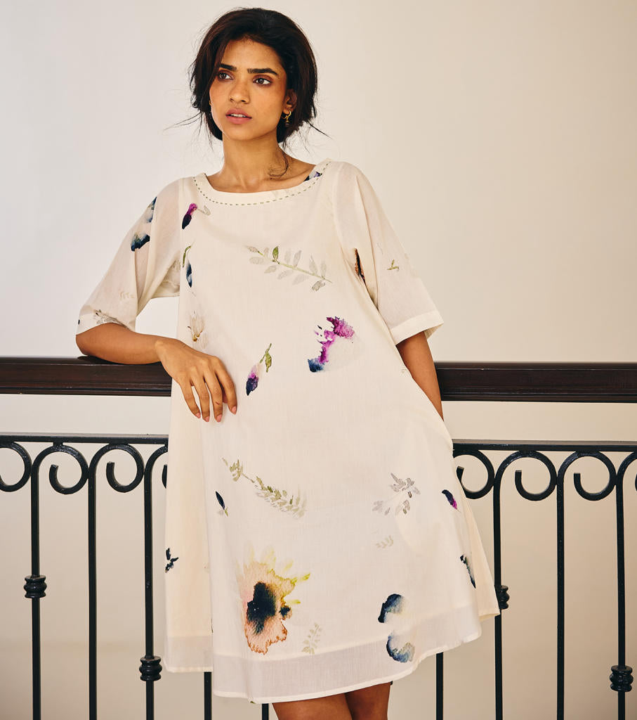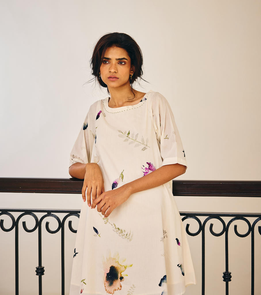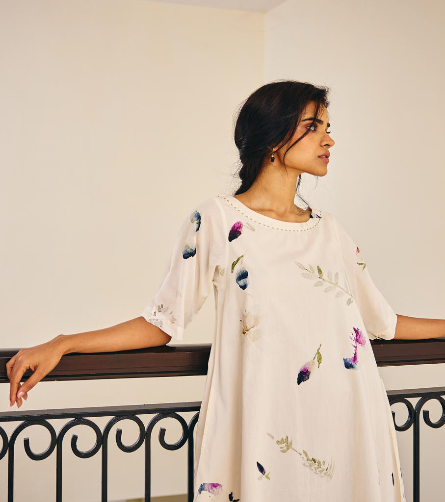 A classic floral A line dress crafted in soft cotton mul that personify elegance and grace.