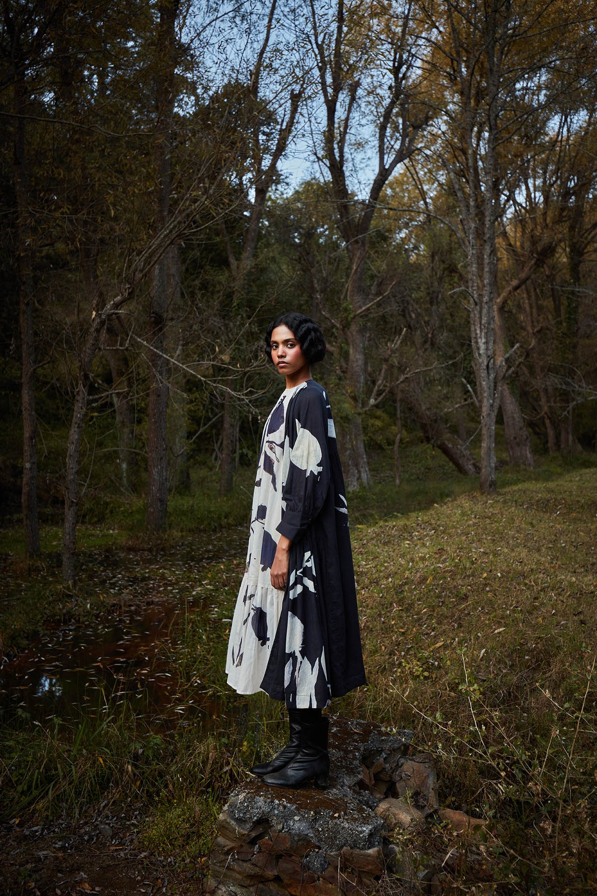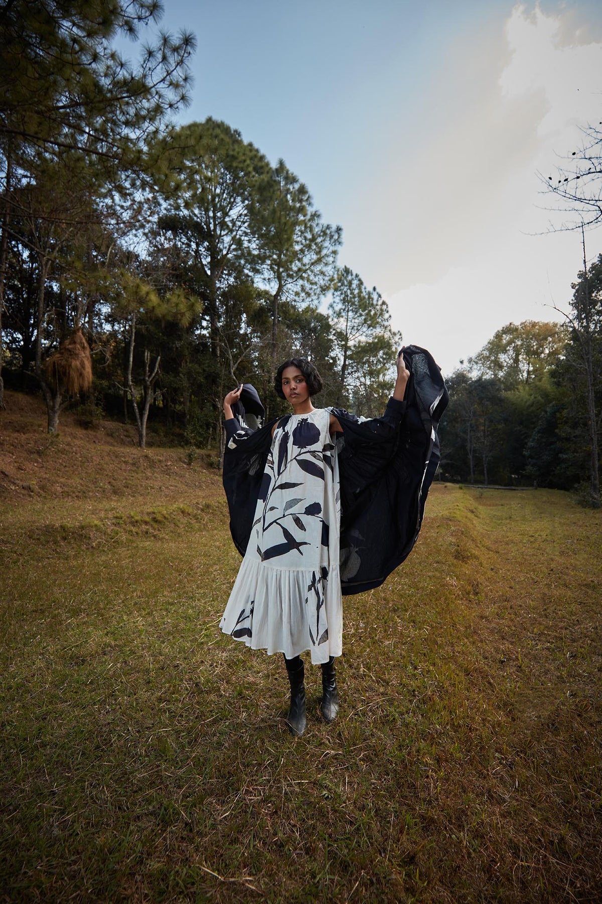 The wild impression co-ord set draws inspiration from the rugged beauty of the highlands and mountains, blending natural elements with contemporary design. The striking monochrome pattern captures the essence of the landscape, offering a chic yet adventurous style.