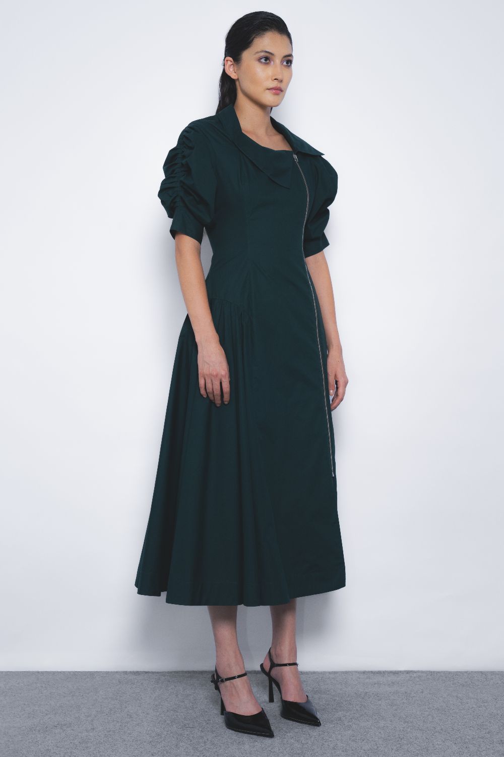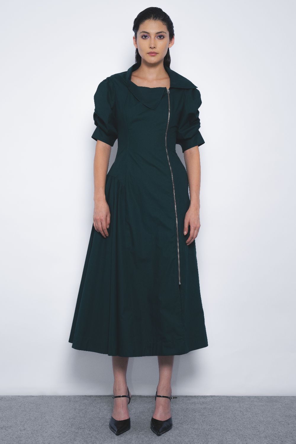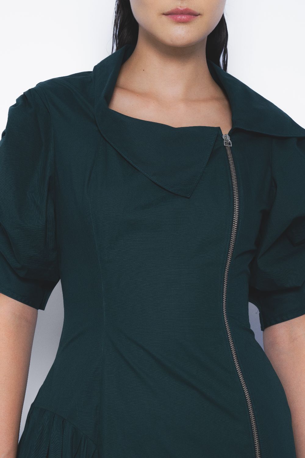 This silhouette presents a striking juxtaposition of classic femininity and edgy biker aesthetics. Tailored construction with clean lines and delicate proportions meets structured elements, resulting in a garment that is both refined and daring—elegant, yet infused with a rebellious attitude.